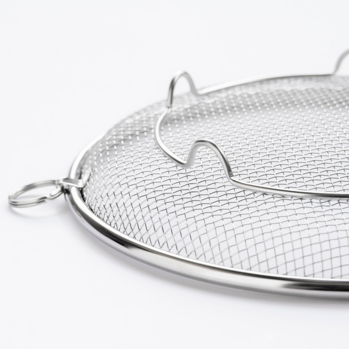 両側にリングが付いているので、水切りの際もしっかり振れて安心。収納時には引っ掛けてすっきり片付けられます。