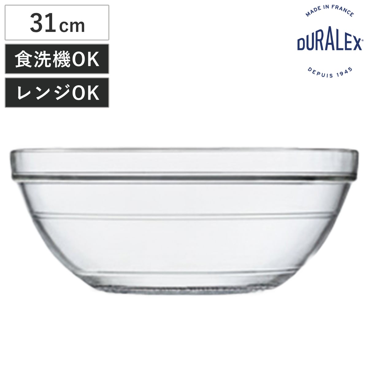 フランスの有名なグラスウェアブランドDURALEX社のボウルです。迫力ある大容量サイズ。サラダや冷製料理を豪快に盛り付ければ、テーブルを華やかに演出できます。耐熱のため、下ごしらえから調理までこなせ、出来立てをそのまま食卓にサーブできます。
