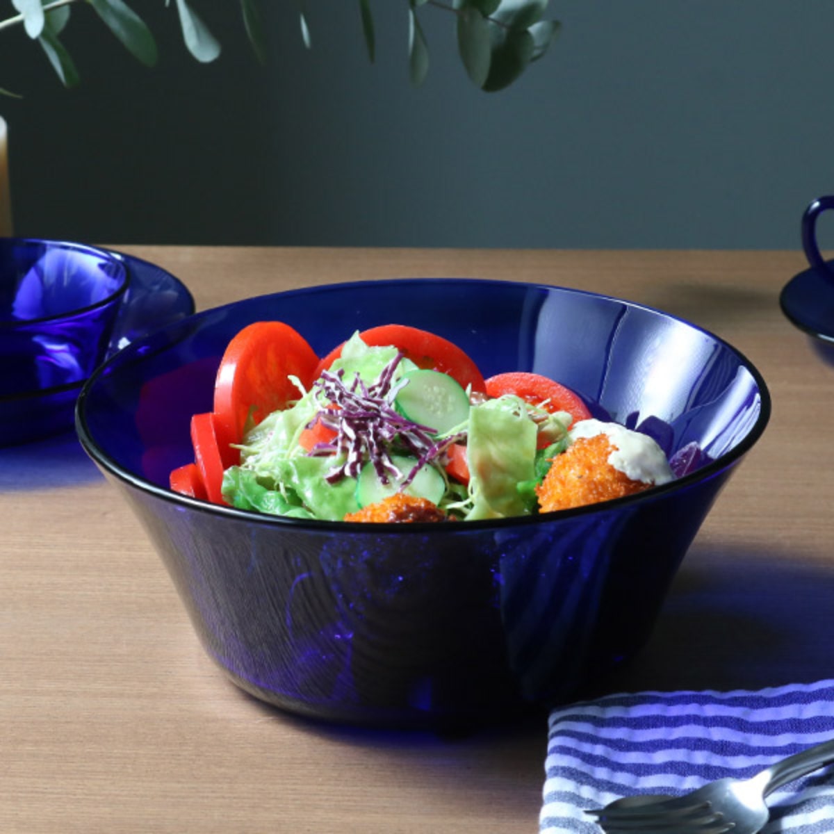 フランスの有名なグラスウェアブランドDURALEX社のボウルです。取り分け用の大皿やたっぷりサラダにぴったりで、家族の食卓で使いやすいサイズ感です。耐熱のため、下ごしらえから調理までこなせ、出来立てをそのまま食卓にサーブできます。