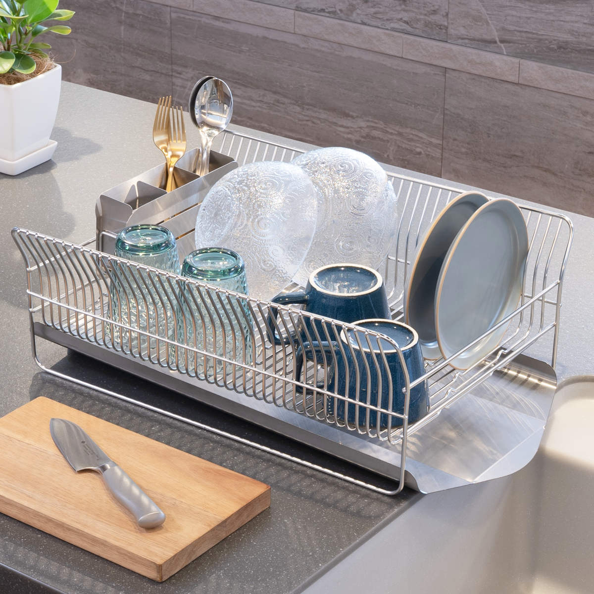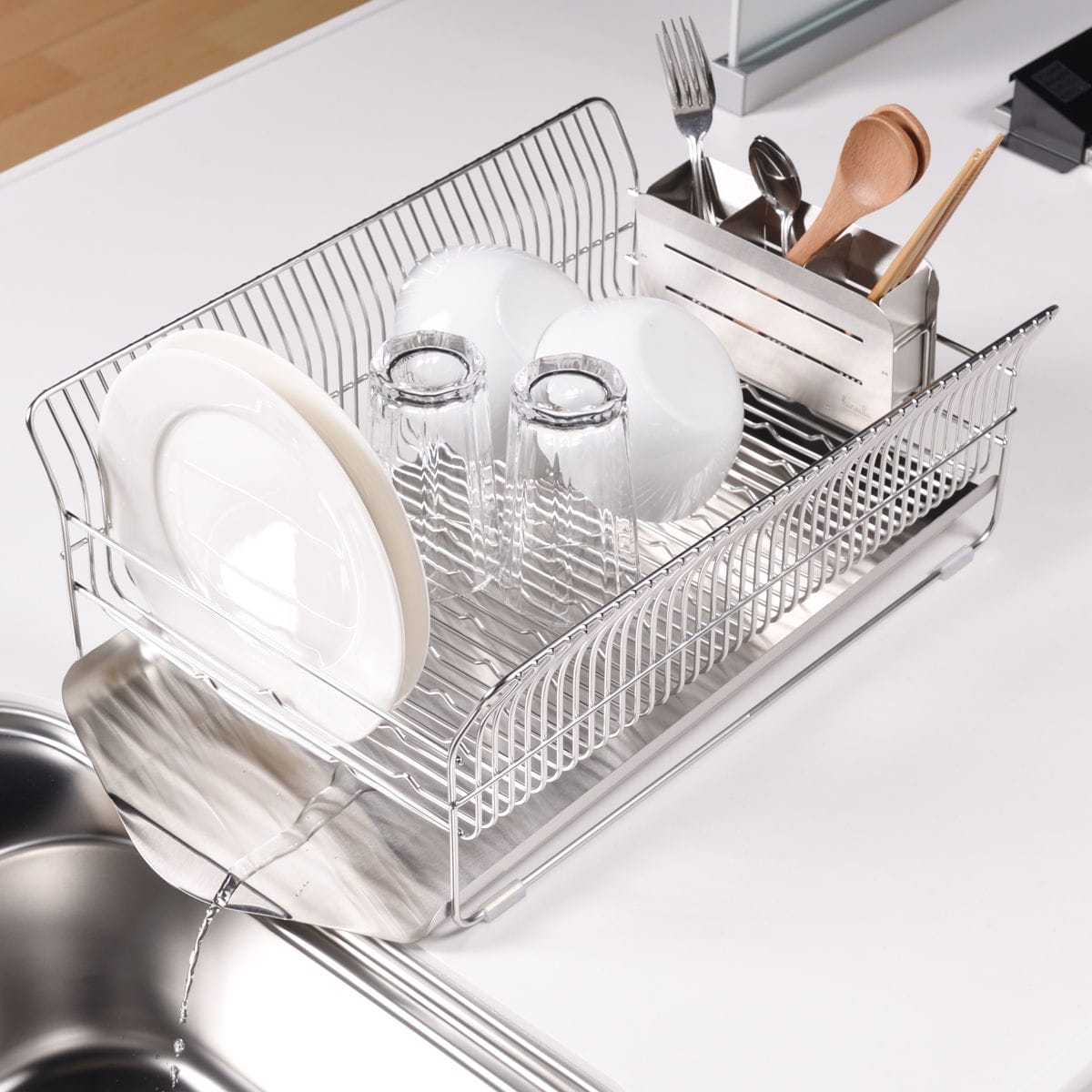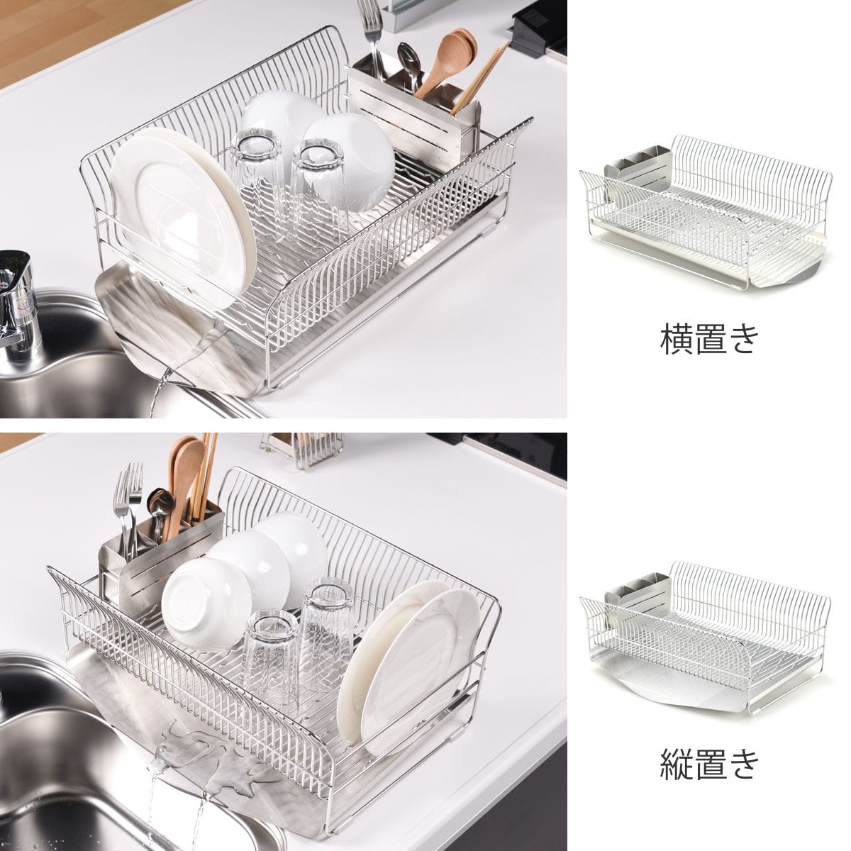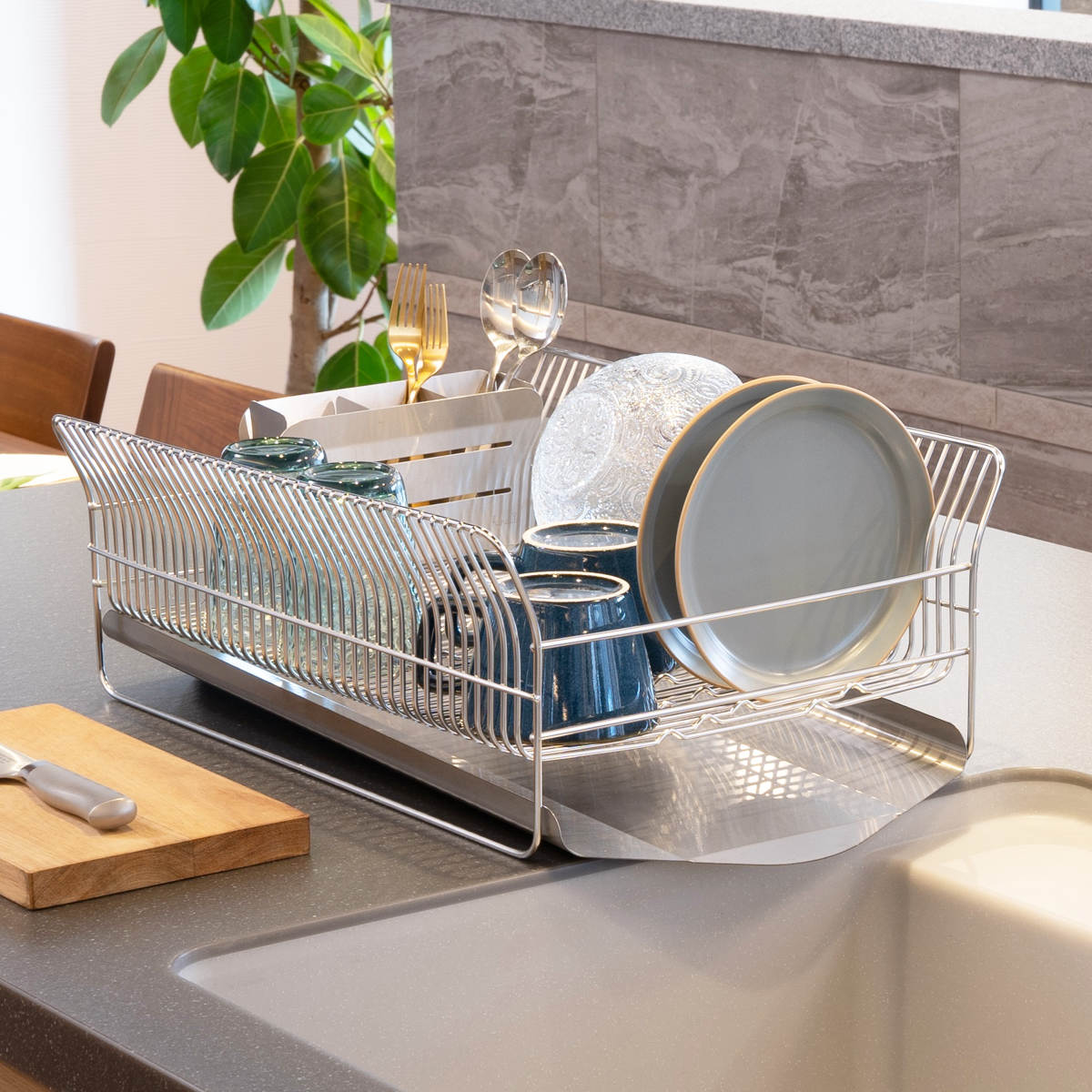 スリムサイズなので、シンクまわりの限られたスペースにもすっきり収まります。普段は食洗機を使う方も、サブの水切りラックとして気軽に活用できます。
