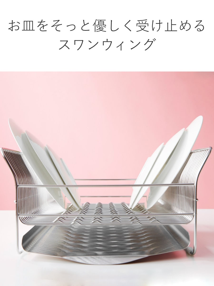 ラックの側面は外に広がる優雅なカーブを描き、お皿をそっと受け止めます。美しい曲線と安定感で、使うたびに心地よさを感じられるデザインです。