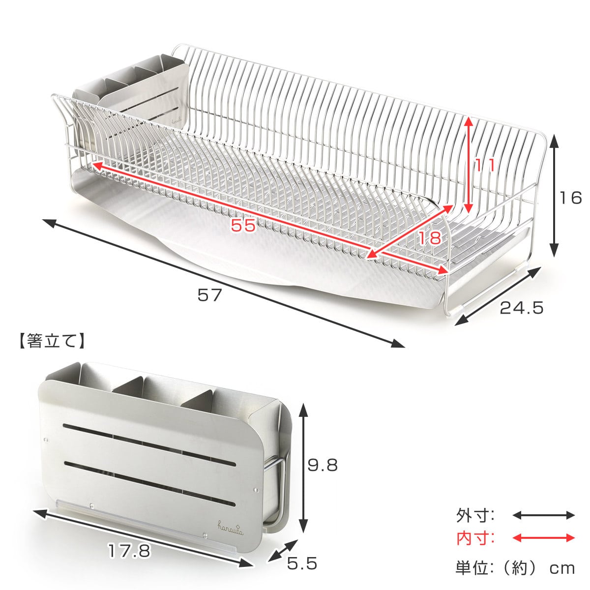 | 材質 | 本体・トレイ・箸立て・仕切り板:18-8ステンレス 滑り止め・クッションゴム:シリコーンゴム |