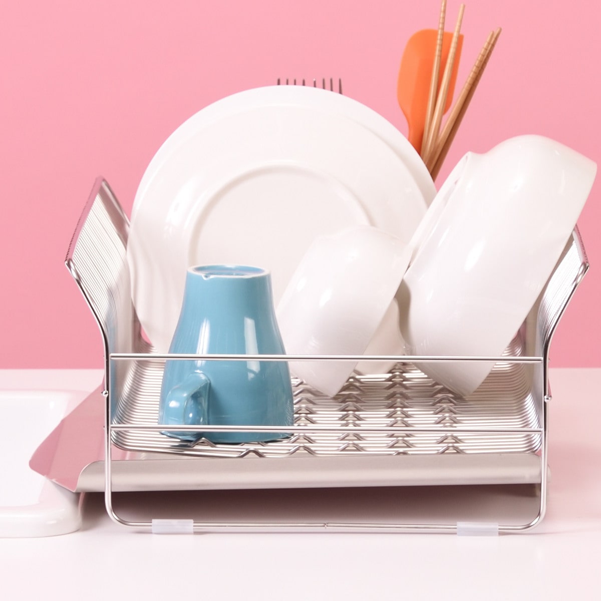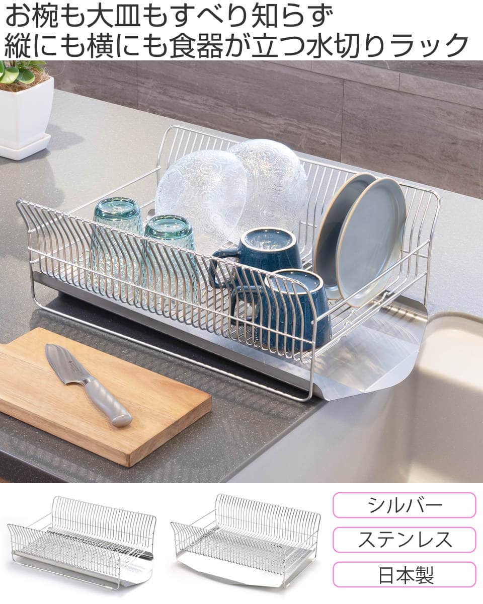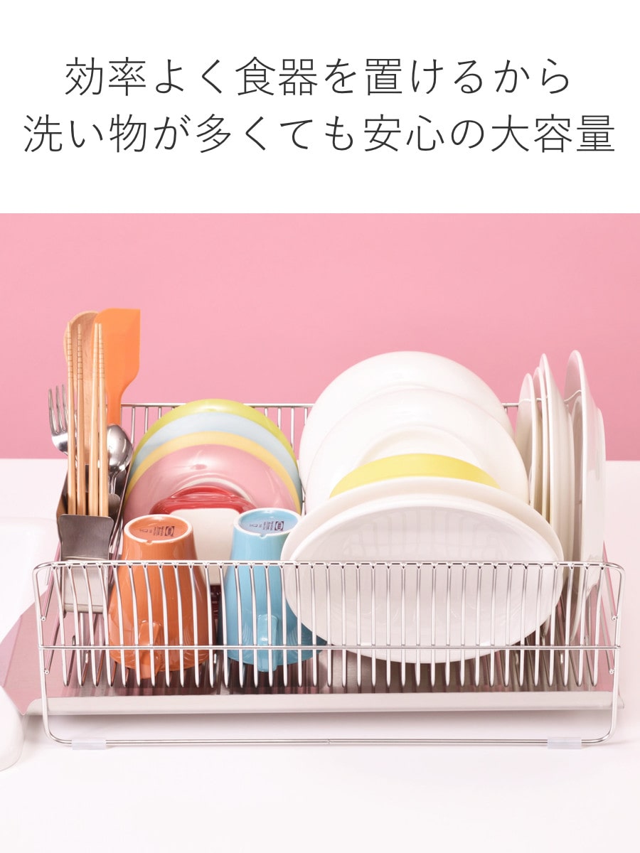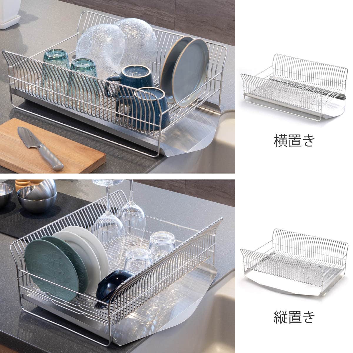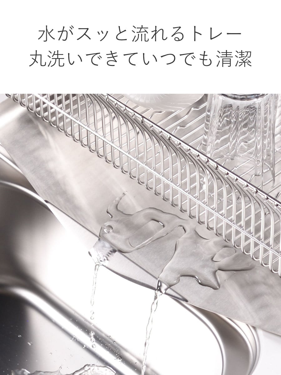 スリムサイズなので、シンクまわりの限られたスペースにもすっきり収まります。普段は食洗機を使う方も、サブの水切りラックとして気軽に活用できます。