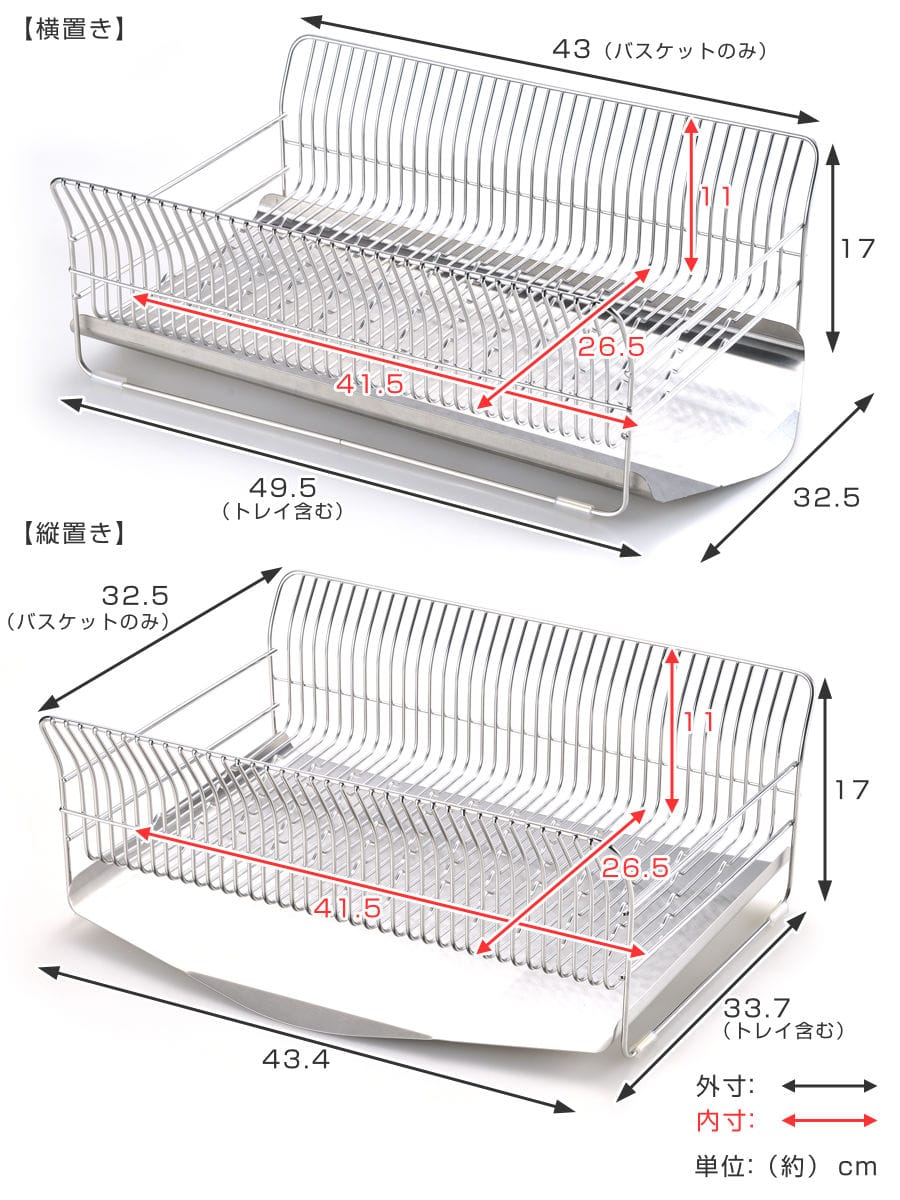 | サイズ | 【横置き】 約幅49.5×奥行32.5×高さ17cm(トレイ含む) 約幅43×奥行32.5×高さ17cm(バスケットのみ) 内寸:約幅41.5×奥行26.5×高さ11cm 【縦置き】 約幅43.4×奥行33.7×高さ17cm(トレイ含む) 約幅43.4×奥行32.5×高さ17cm(バスケットのみ) 内寸:約幅41.5×奥行26.5×高さ11cm |