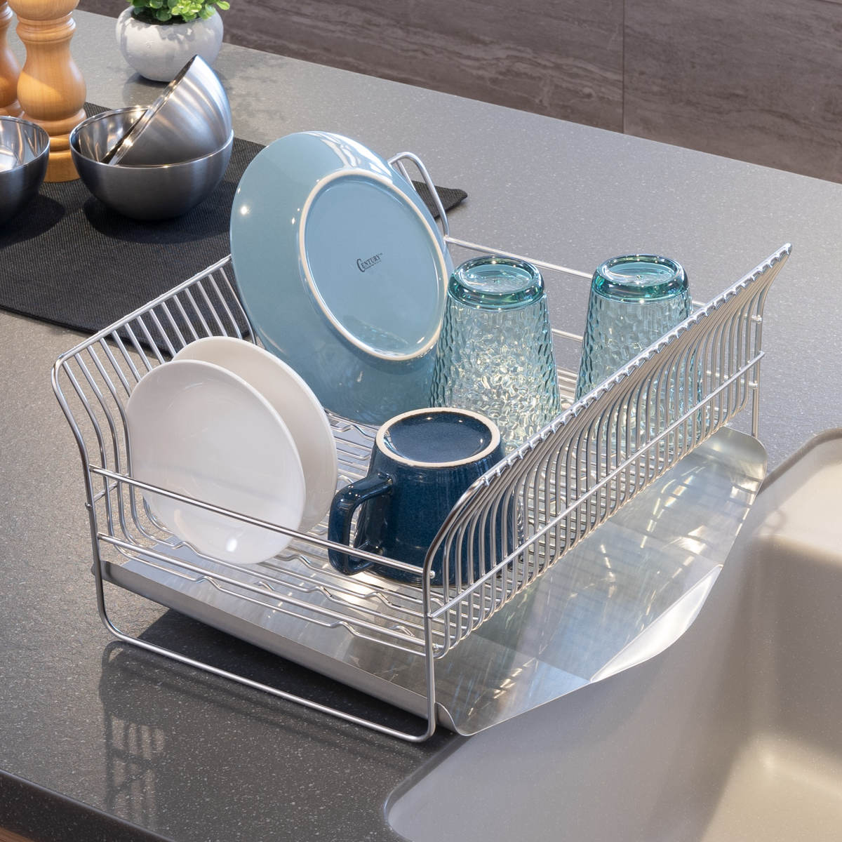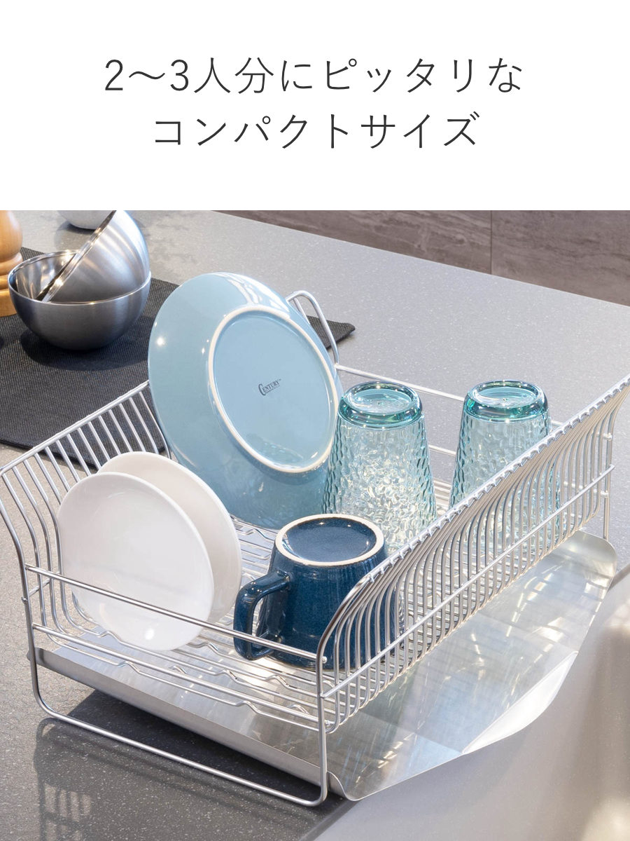 耐荷重は約10kgで、大皿やお椀もしっかり収まります。2~3人分にちょうど良いコンパクトサイズで、シンクまわりのちょっとしたスペースにも置きやすく、普段は食洗機を使う方のサブの水切りラックとしても活躍します。