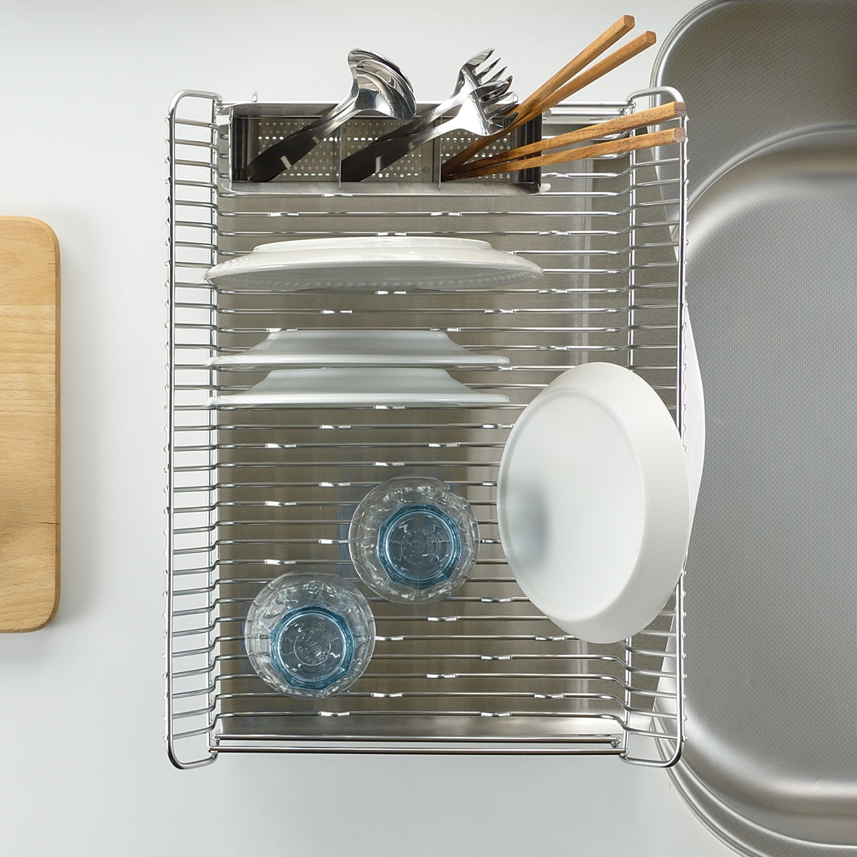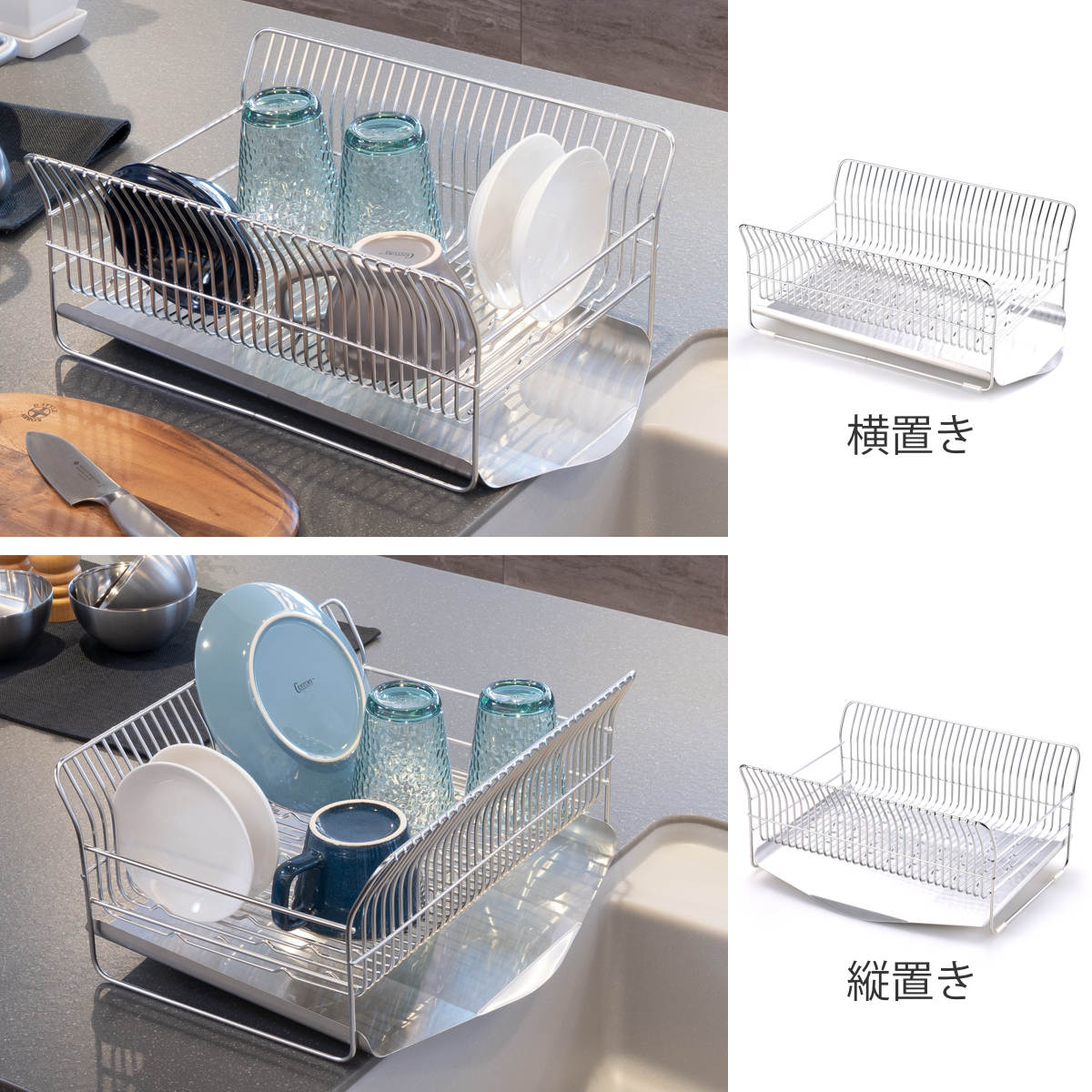 独自の「たてよこウェーブ」構造により、お皿を縦にも横にも安定して立てられます。底部の波状ワイヤーがお椀や大皿もしっかり支え、すべり落ちを防止。考えなくてもスムーズに片付けができ、キッチンをすっきり整えられます。