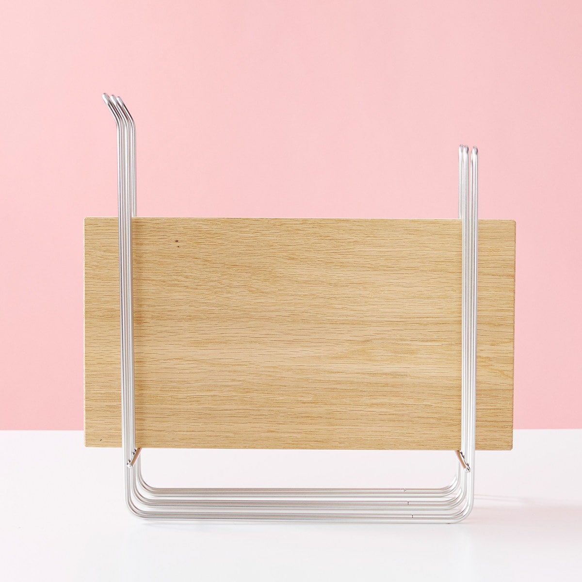 ハンガーの向きを変えると、2枚までまな板を収納可能。ハンガーと脚の間にまな板を渡せば、乾かしながらすっきり収納できます。