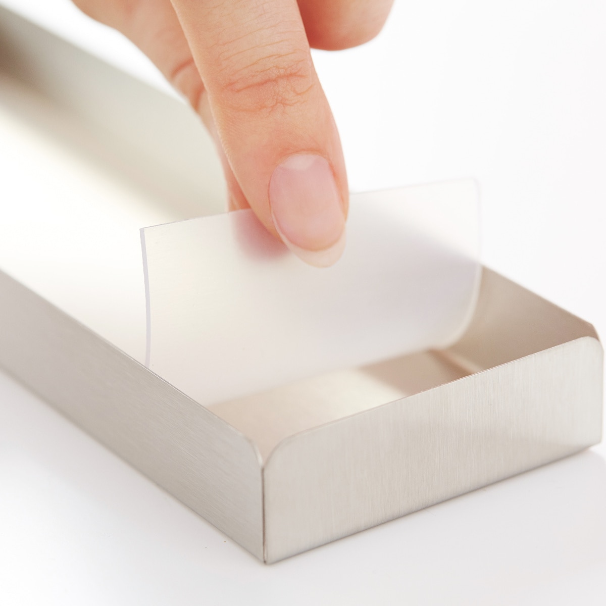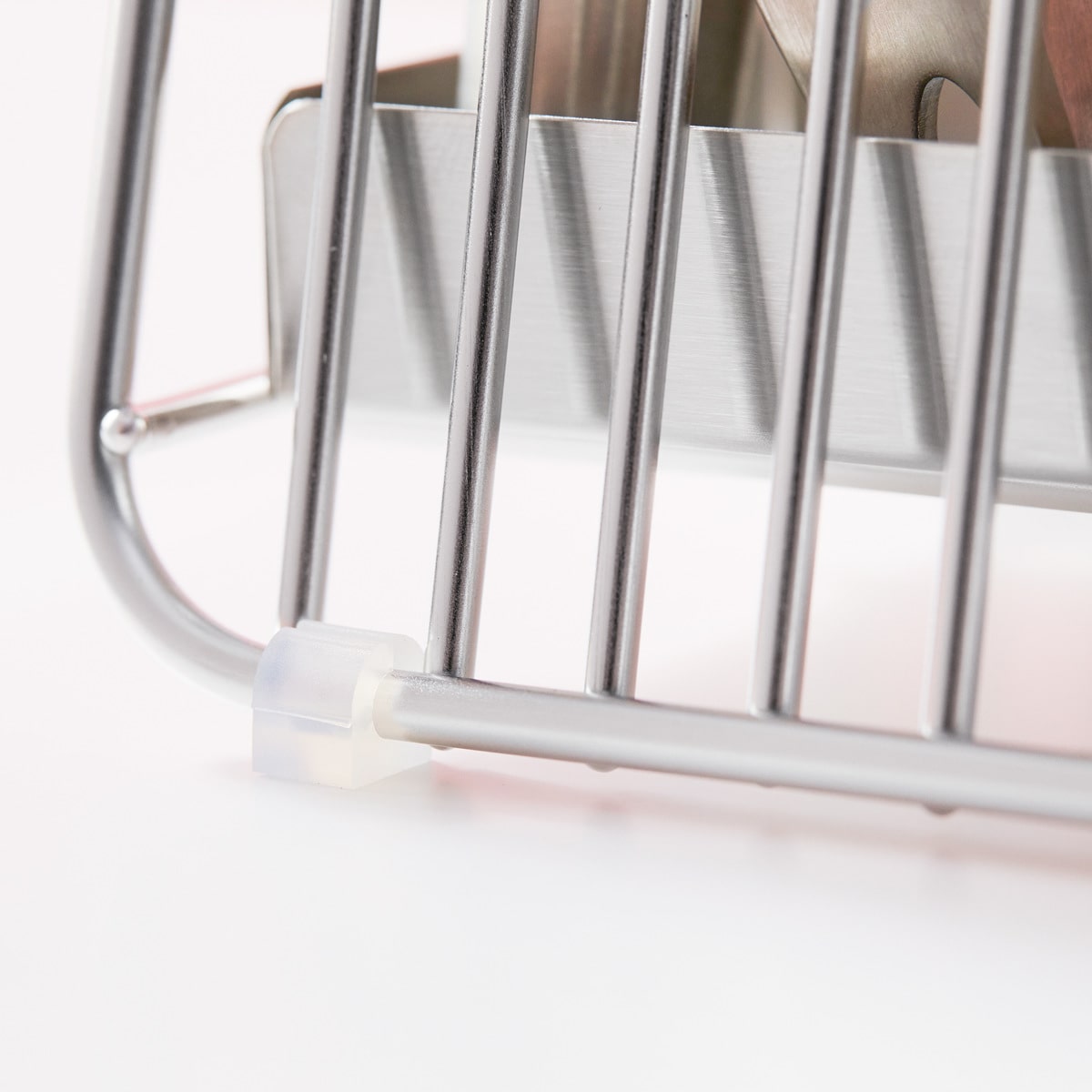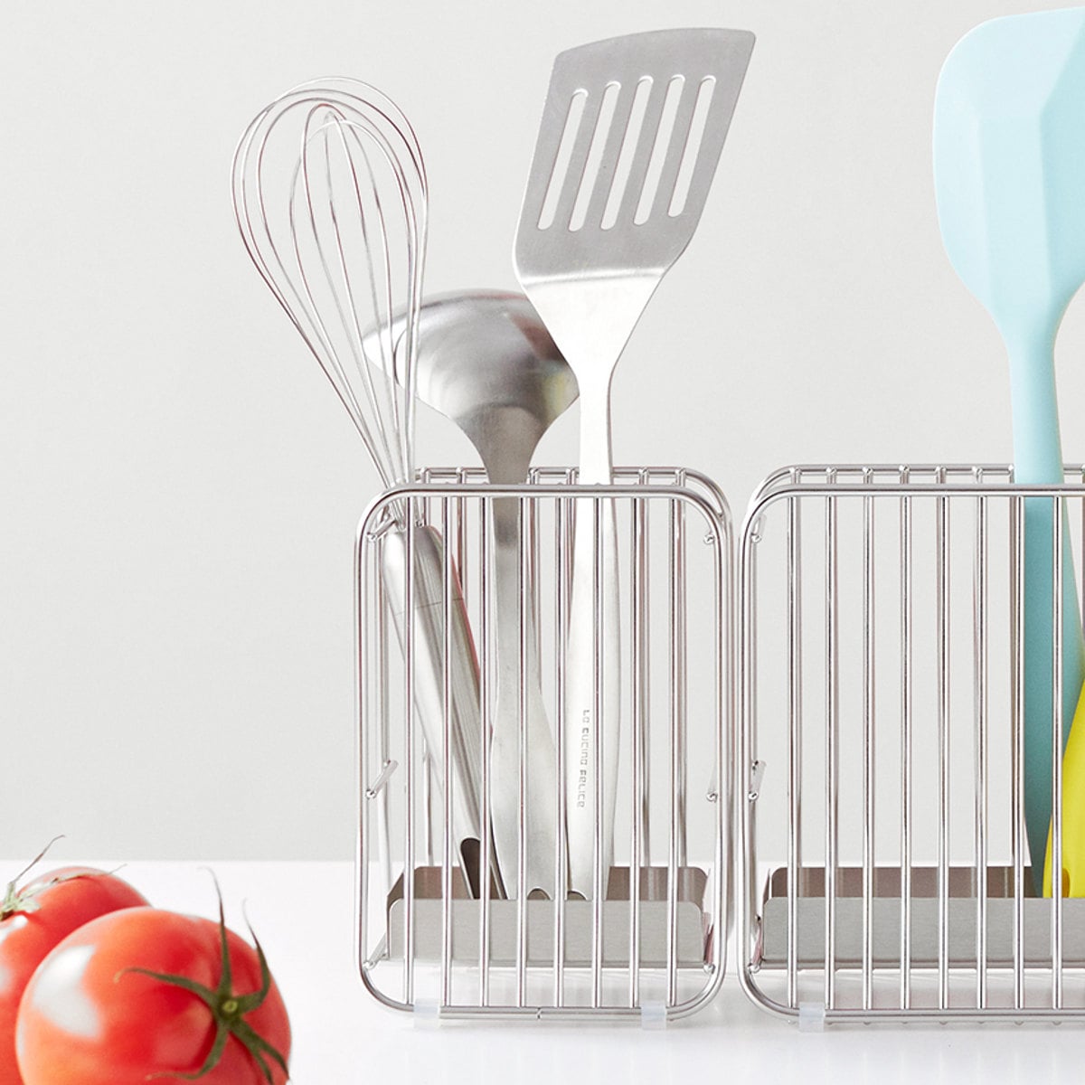 下に向かって広がる形状で、スリムなのに倒れにくい設計。背の高いキッチンツールもしっかり安定して立てられます。