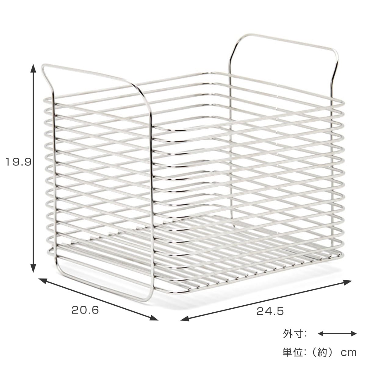 バスケットにはハンドルが付いており、移動や掃除のときにサッと持ち上げて運べます。日々のキッチン作業を快適にサポートしてくれる便利な仕様です。