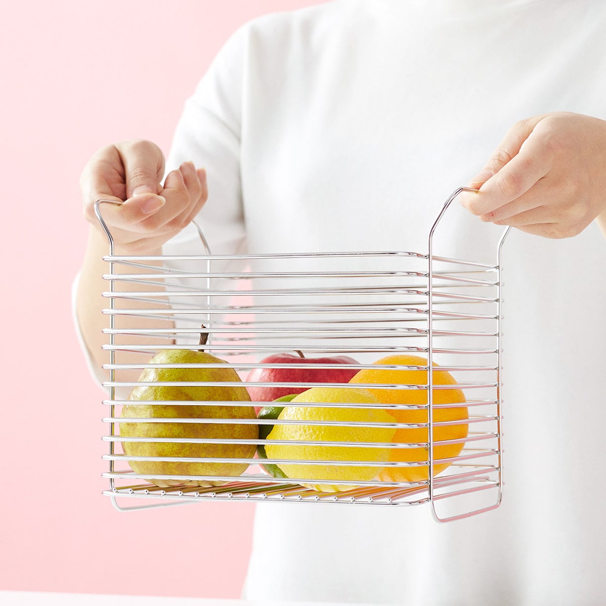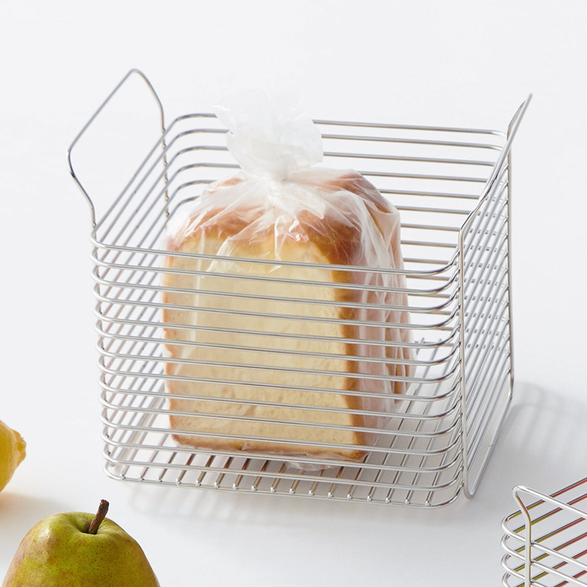 毎日使うキッチン周りの小物をすっきり整理できるシンプルな収納バスケット。パンやコーヒー、調味料やお菓子のストックにも活躍します。ワイヤーデザインで脚が付いているため通気性が良く、圧迫感がないのも嬉しいポイントです。
