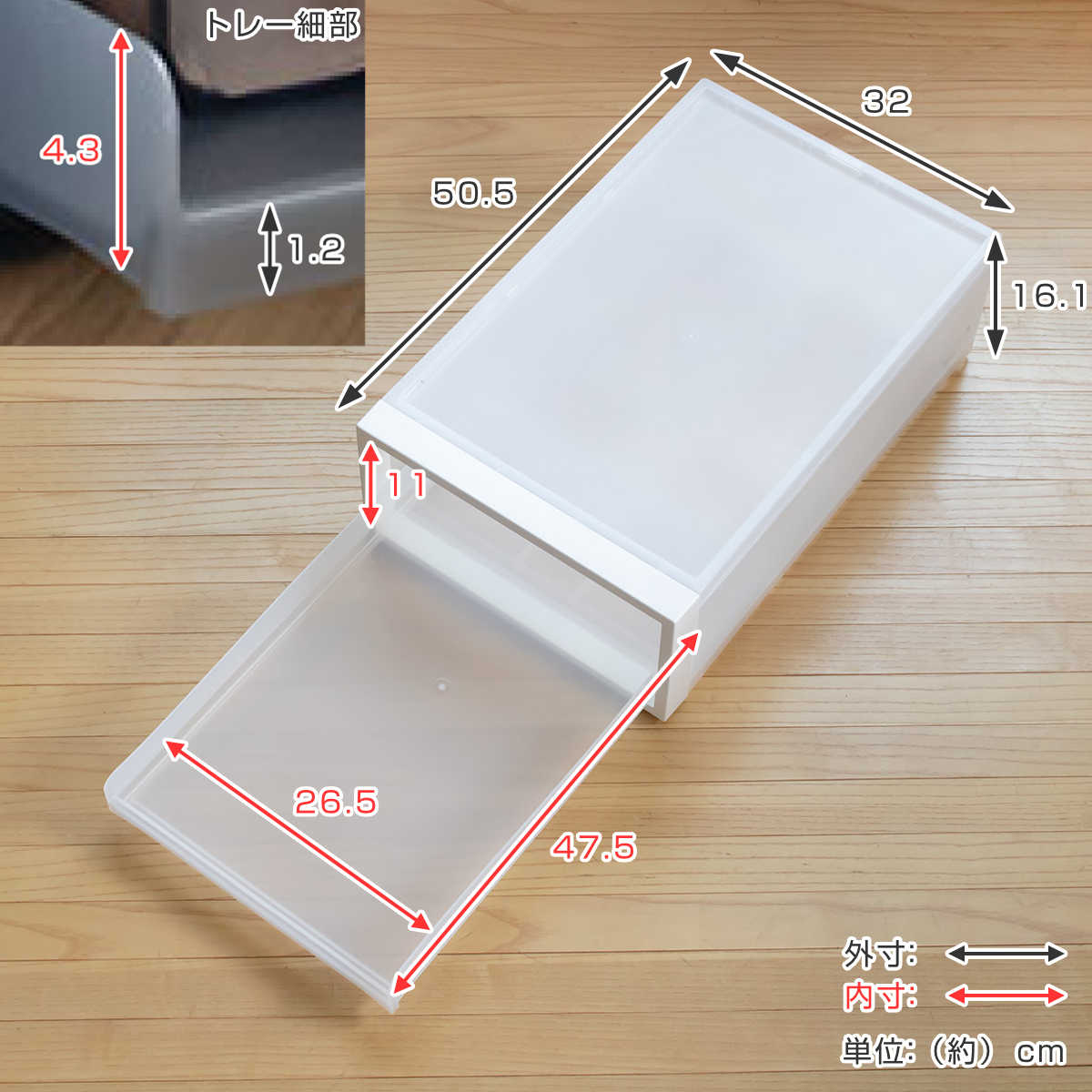 トレー内寸:約 幅26.5×奥行47.5×高さ11(cm)