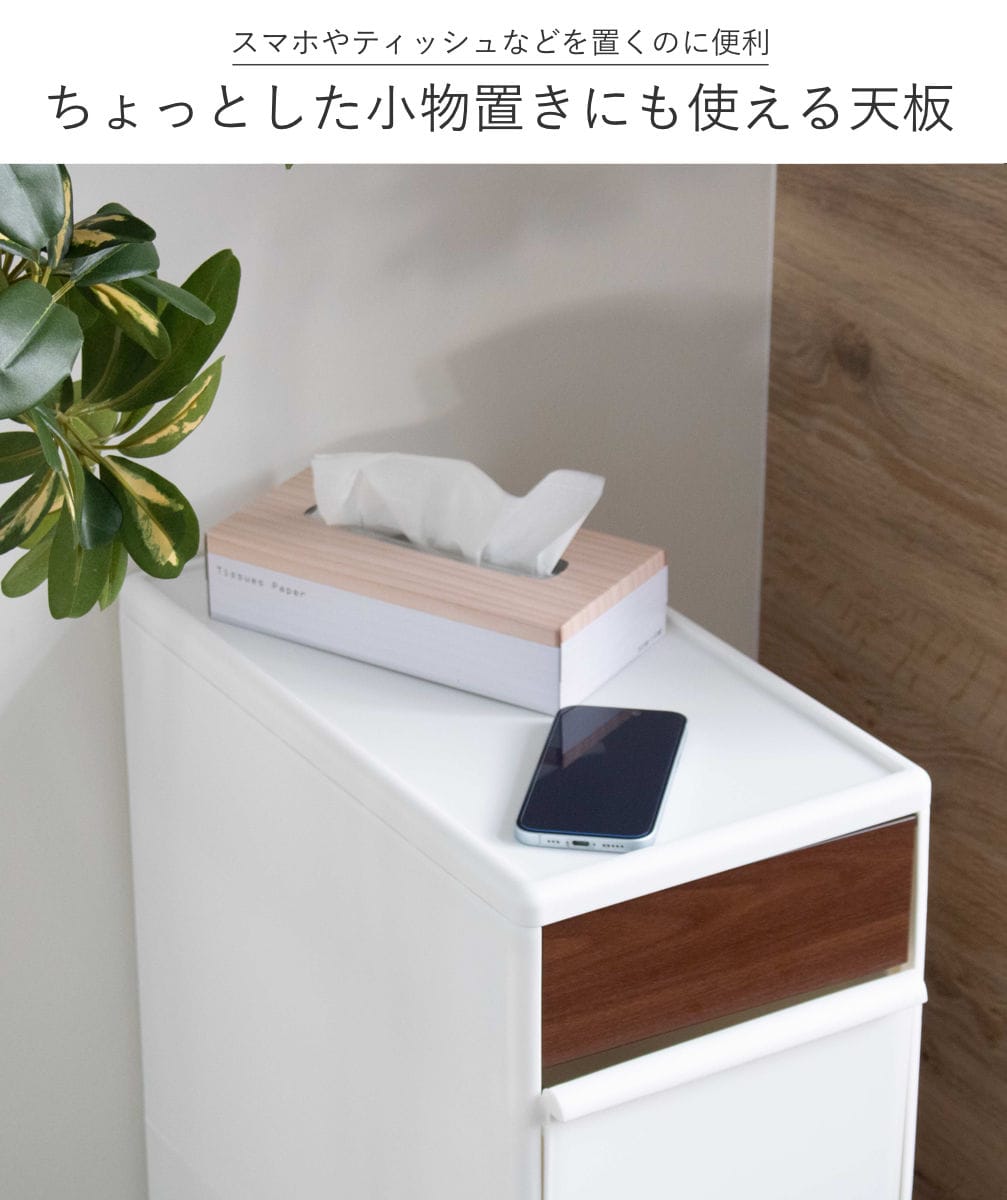 天板にはスマホやティッシュなどのちょっとした小物を置くことができます。手の届く場所に置くことができて便利です。