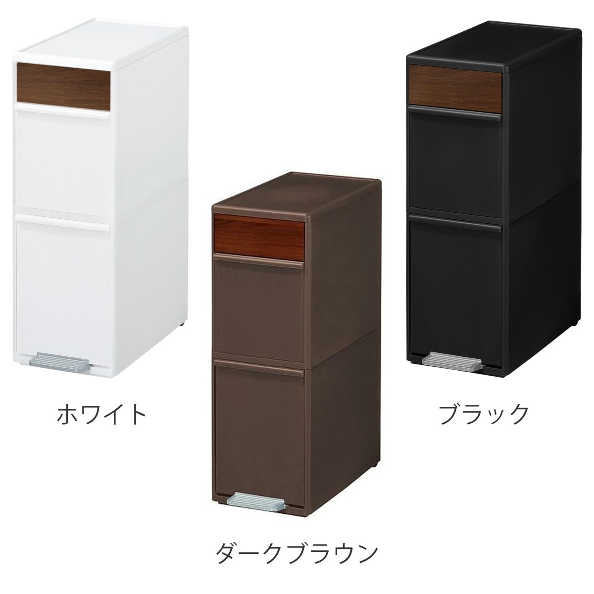 ![]() 2段 35L ウッドトップ | ![]() 3段 55L ウッドトップ | ![]() 3段 55L 木目調パネル |