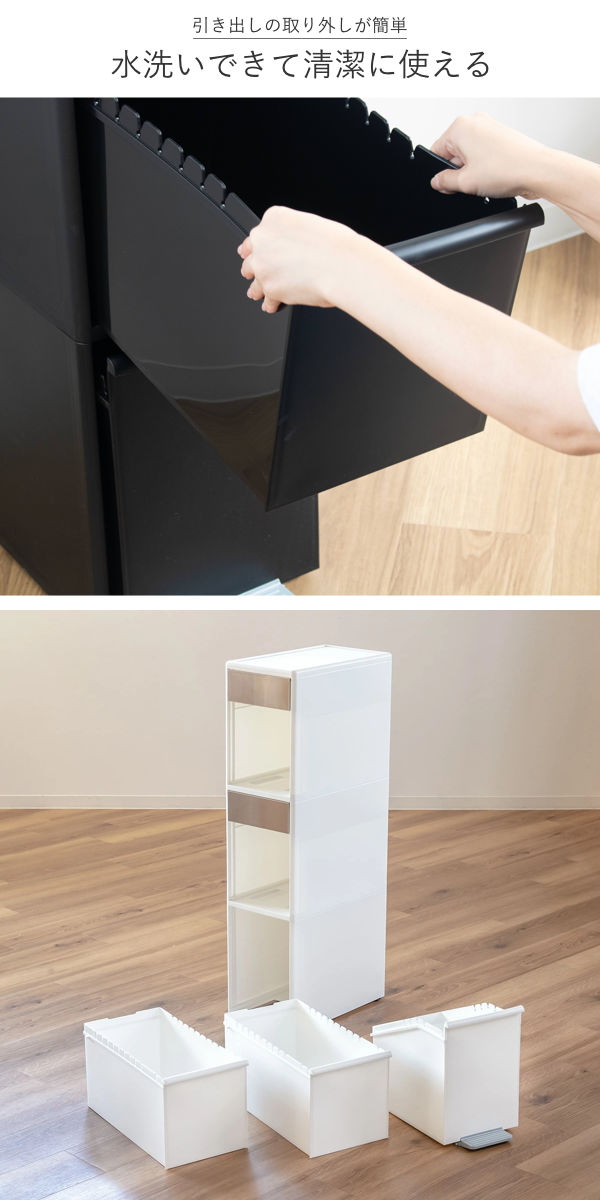 各段の引き出しは取り外しが簡単にできます。汚れが気になった場合は取り外してまるごと水洗いすることも可能です。