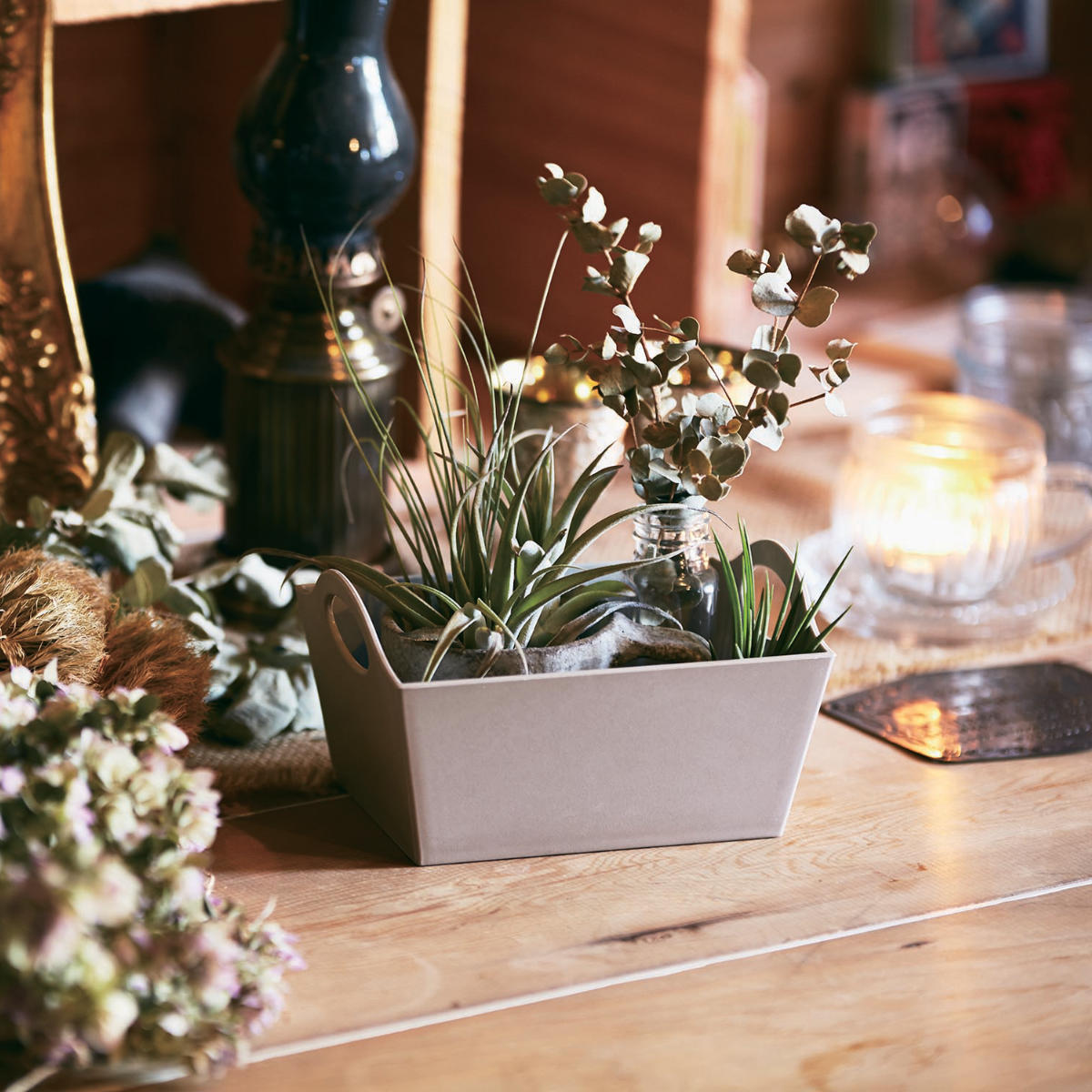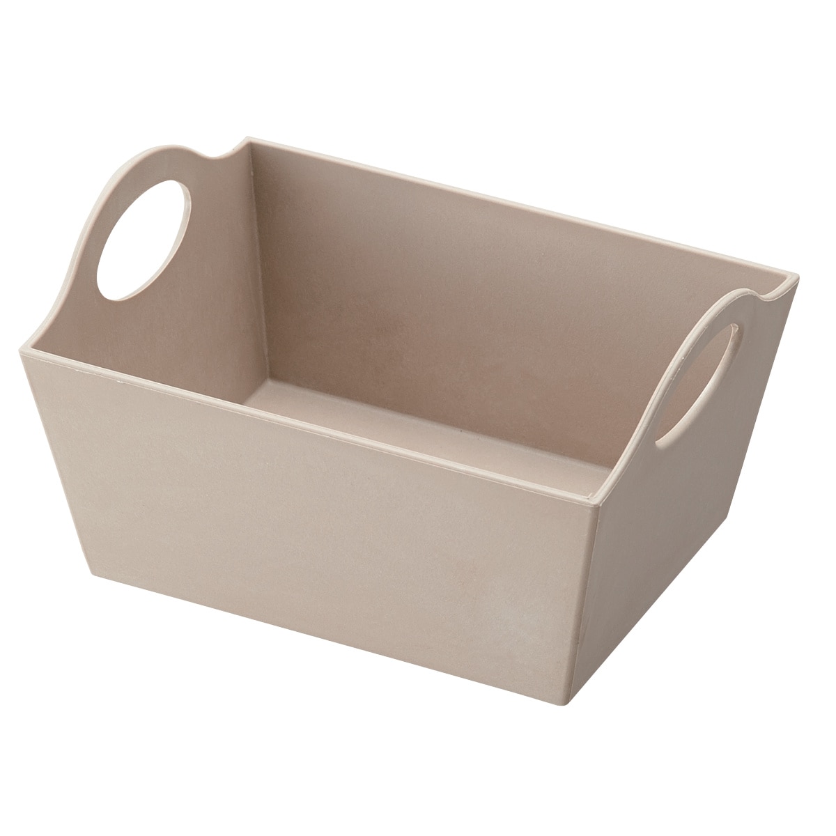 紙製ボックスのようなあたたかみを感じるお洒落な風合いと、シックで落ち着いた色がお部屋に馴染みやすい浅型のミニバスケットです。プラスチック製なので水や湿気に強くキッチンやバスルームでも活躍してくれます。