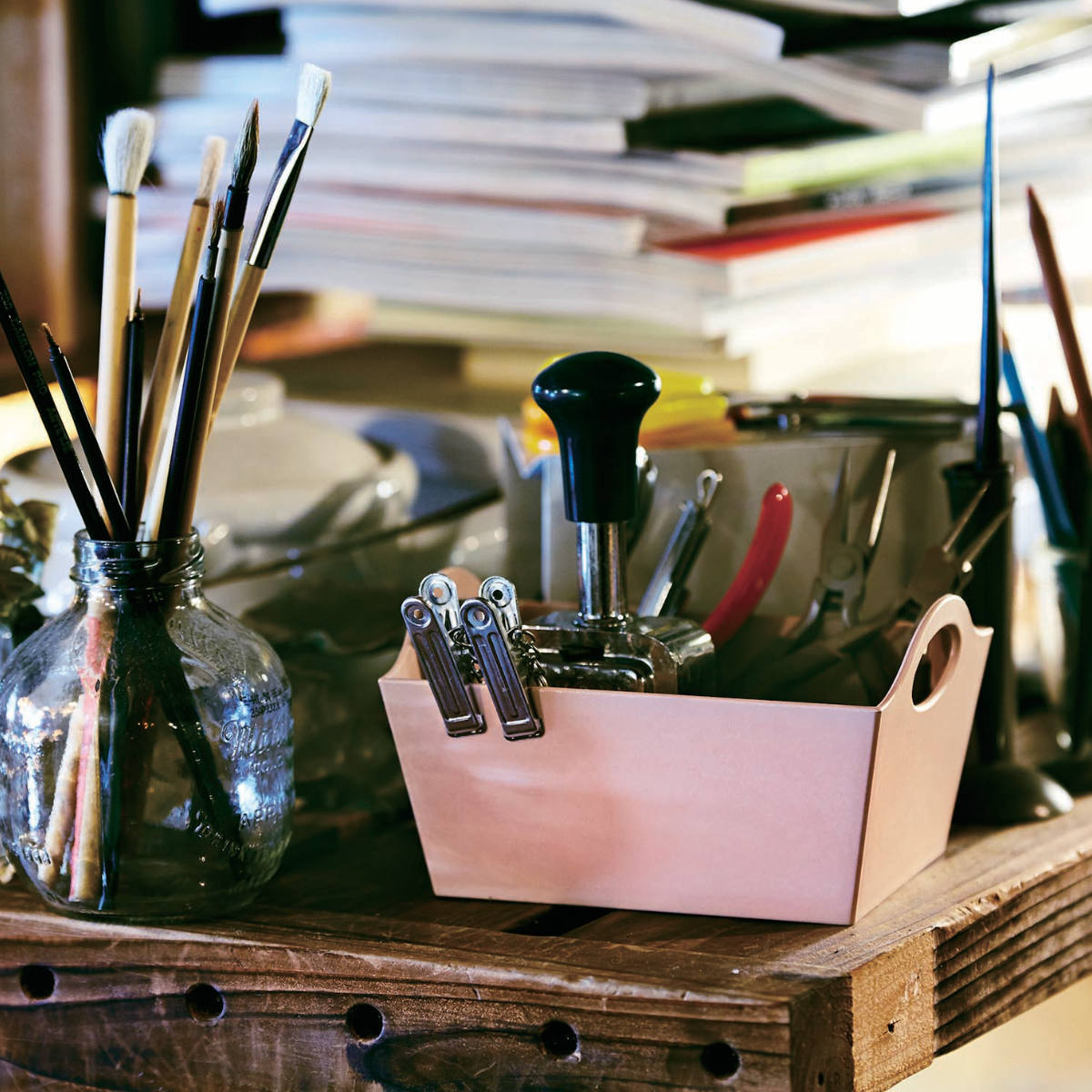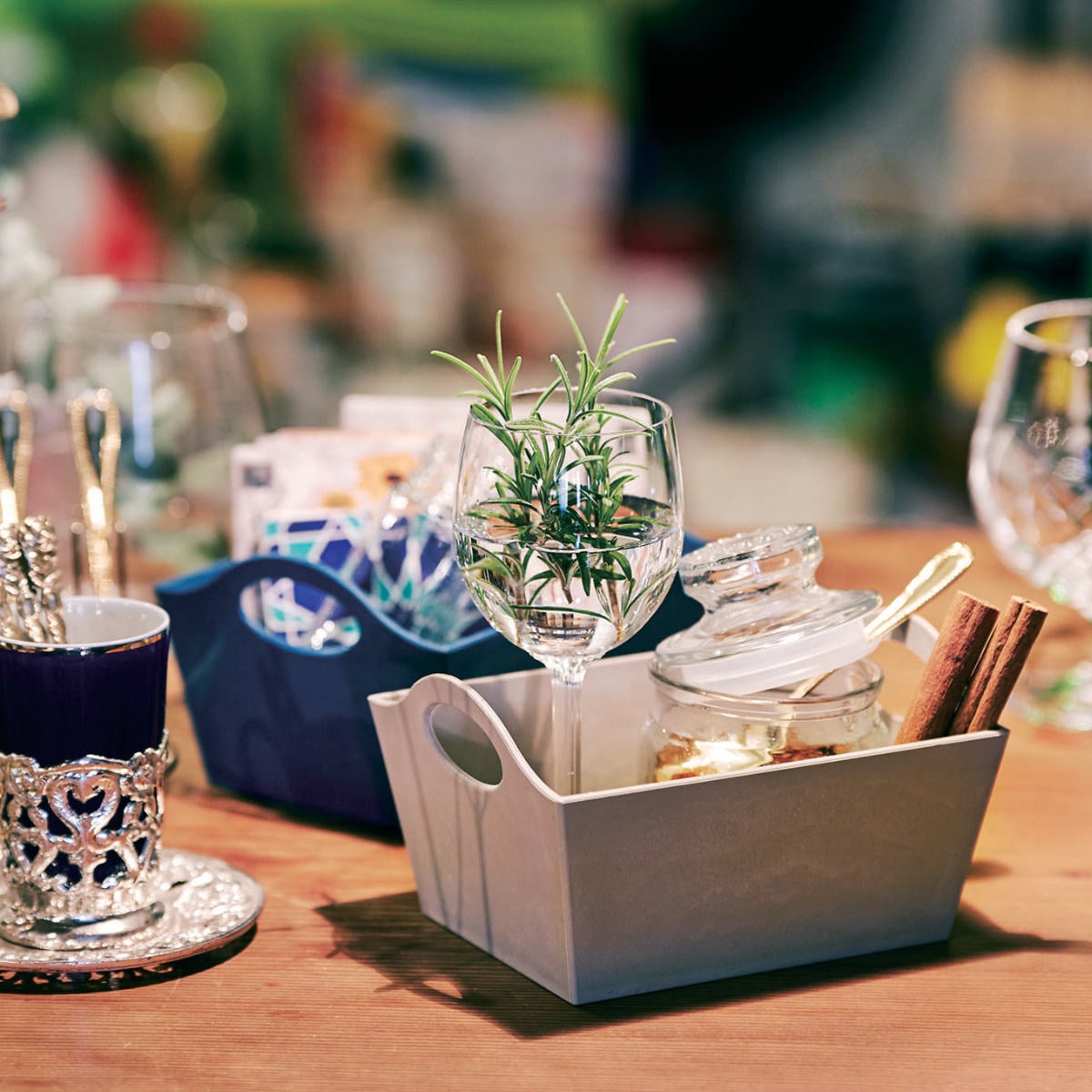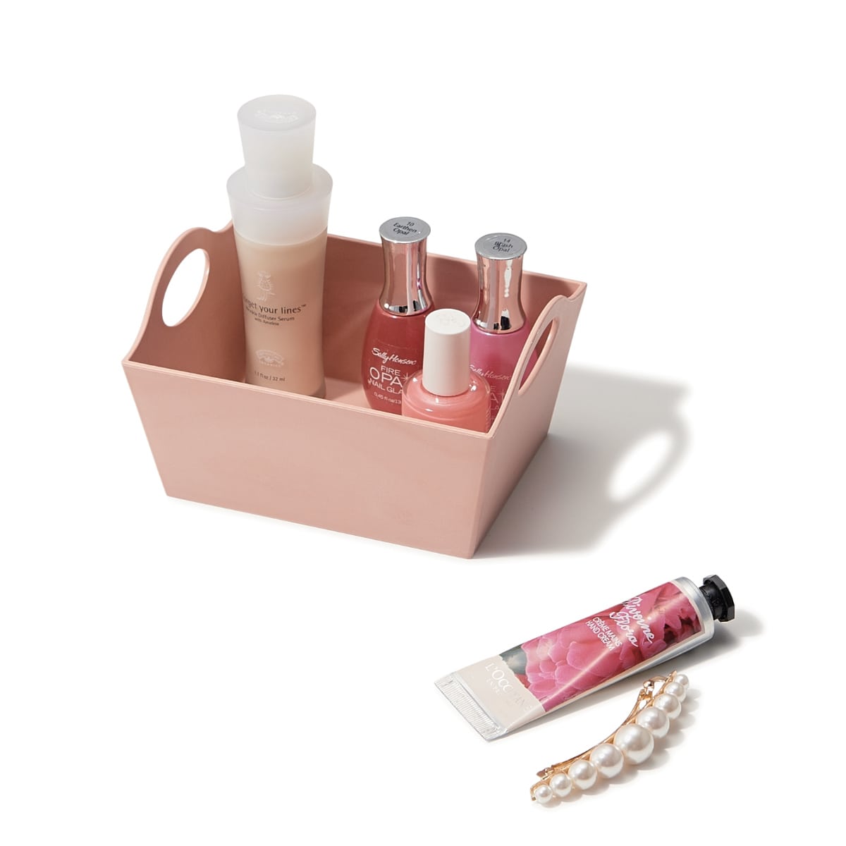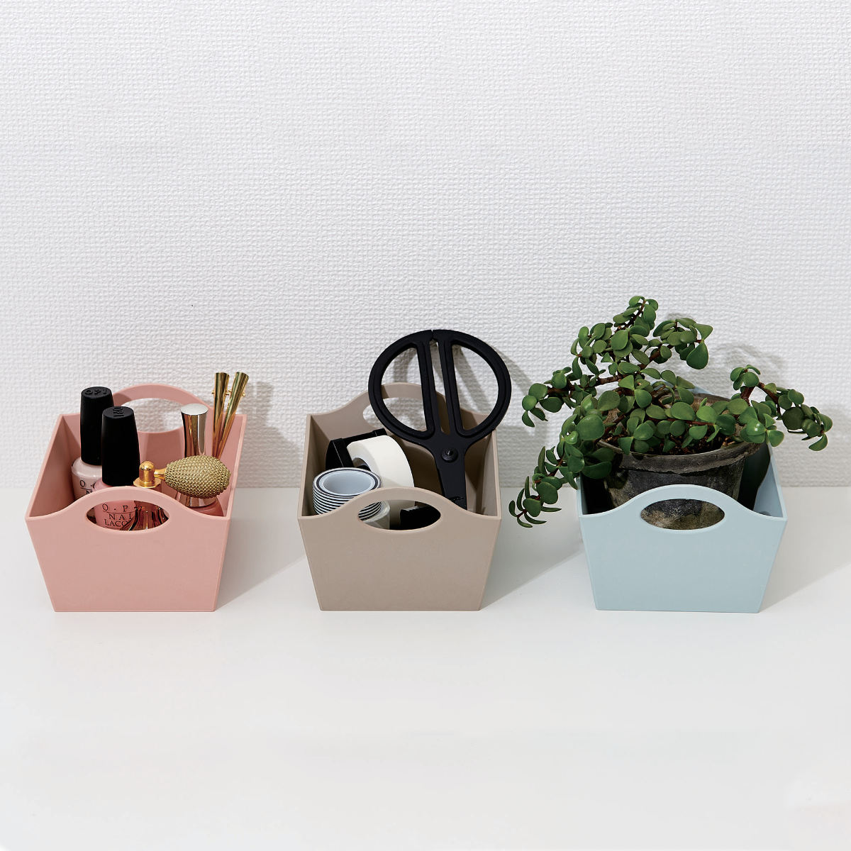 蓋のないオープンタイプなので収納しにくい不定形の雑貨やメガネ等のさっと取り出して使いたいものや、マニキュアやハンドクリームなどをおしゃれに収納できます。スパイスなどの調味料やクリップやマスキングテープなどの細かい文具などを整頓するのに便利なサイズです。