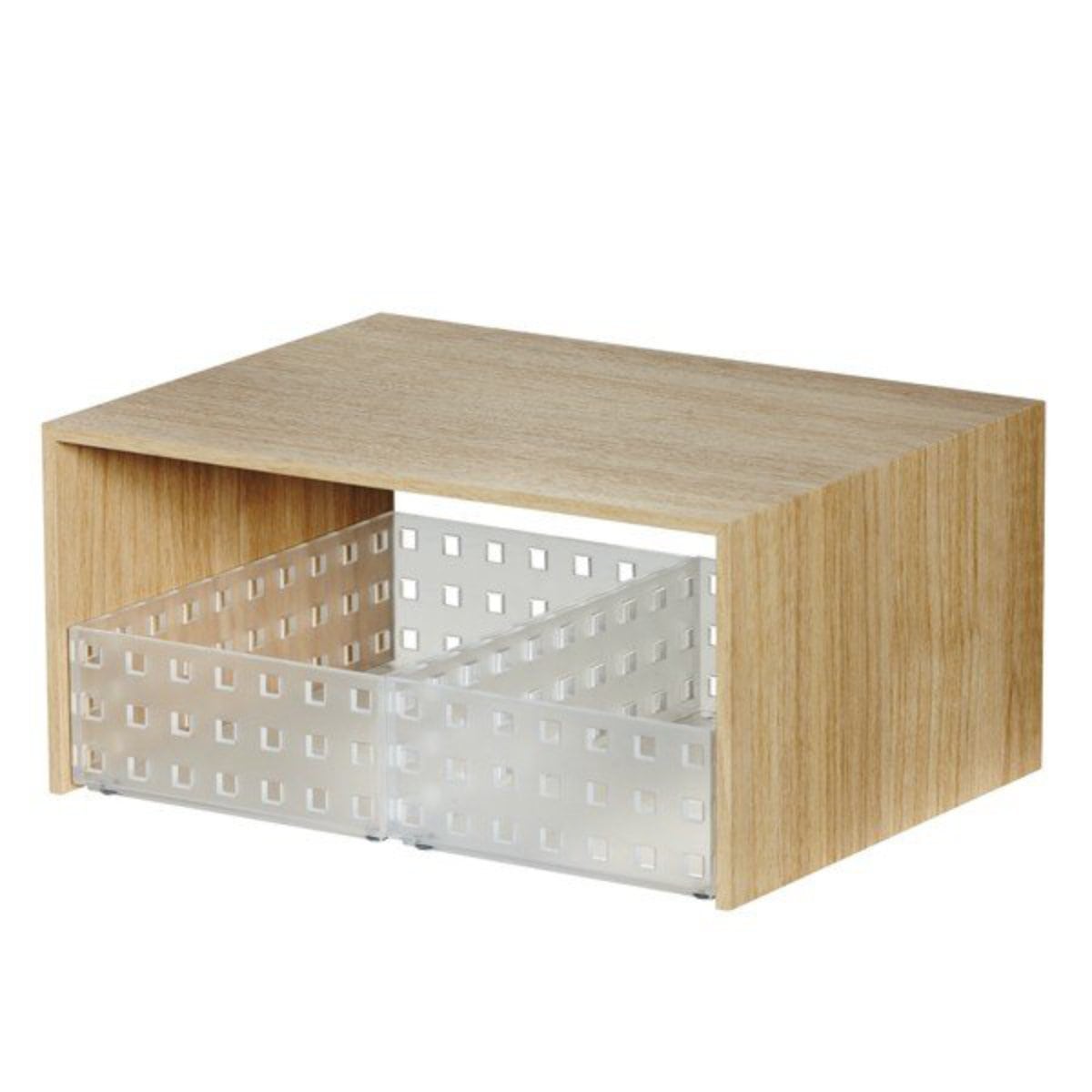 | サイズ | 【ラック本体】 外寸:約 幅29.5×奥行22×高さ14(cm) 内寸:約 幅28.4×奥行22×高さ13.5(cm) 【ケース(1個あたり)】 外寸:約 幅14×奥行21×高さ6.3(cm) 重量:約180g |