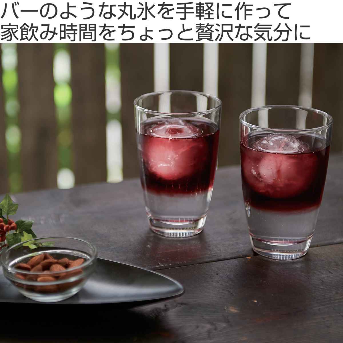 家で簡単に大きな丸氷を作れるアイスボールメーカーです。でき上がりの氷のサイズは直径6cmとロックグラスにちょうどいい大きさになります。丸い氷は四角いものより表面積が小さく、ゆっくり溶けるのでロックで飲むウイスキーなどに最適です。家にいながらバーの雰囲気を味わうことができます。