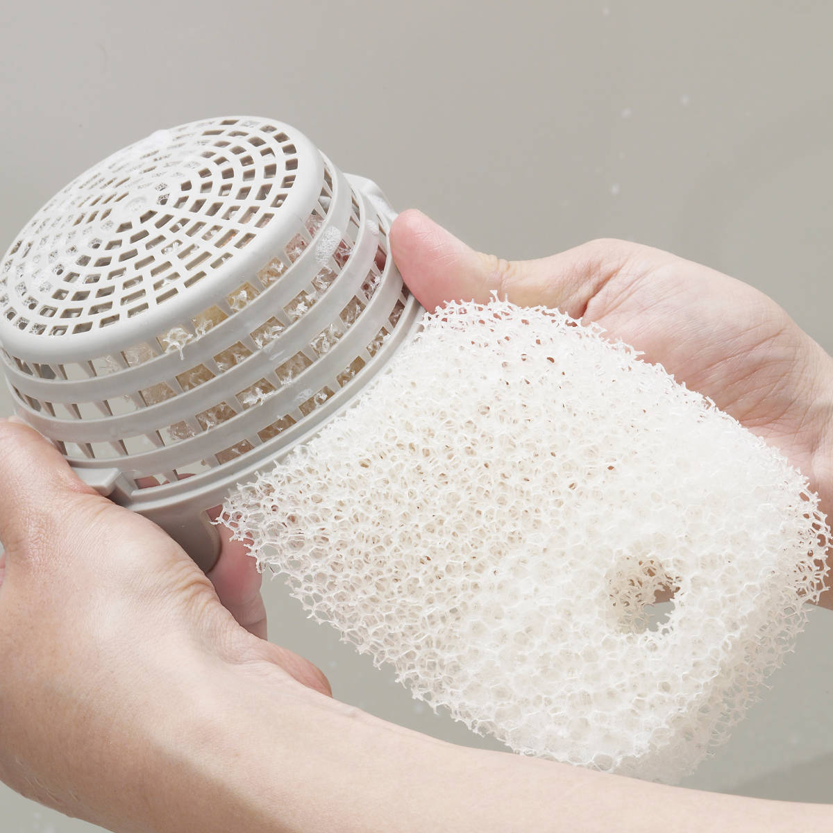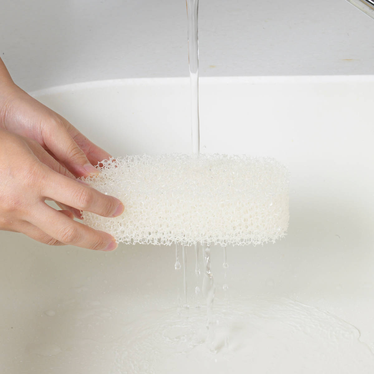 スポンジの目が粗く、細かい隙間や凸凹面に入り込んで汚れを落とします。粗めの脱膜で水切れが良く、スポンジのカビも予防します。