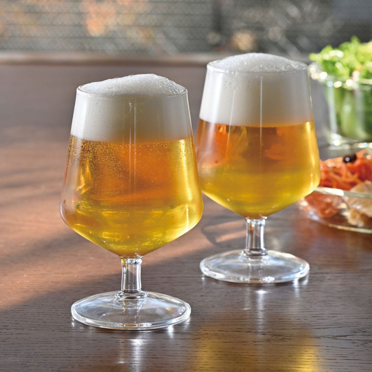 普段の食卓でのビールの時間を愉しんでいただけるビアゴブレット。ペアで使いやすい2個セットです。ゴブレットは、脚があることで高級感がありながら、ワイングラスよりも短めの脚で安定し、日常使いしやすいのが特徴です。大切な方への贈り物にも最適です。