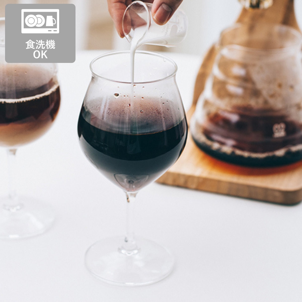 耐熱ガラス製なので、ホットコーヒーやホットワインなど温かい飲み物にも安心して使えます。ニオイ移りしにくく、食洗機使用可能なので、日々のお手入れも簡単です。
