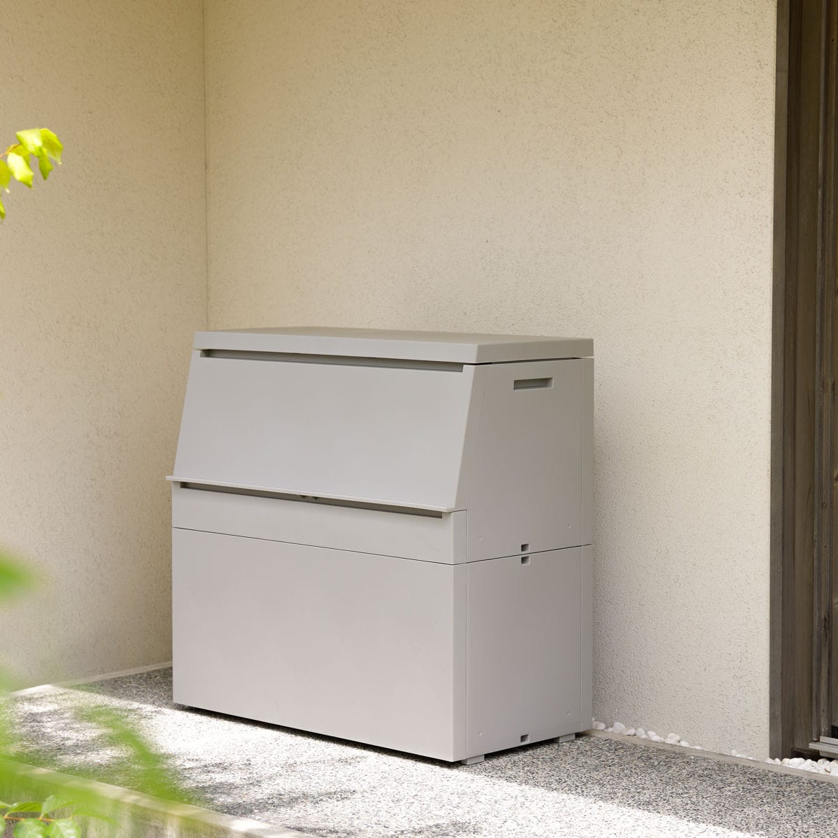 収集日までのゴミをまとめて入れられる大容量サイズの屋外ストッカーです。奥行45cmの薄型設計だから場所を取らず、奥行90cmのベランダにもすっきり設置できます。ベランダや勝手口、ガレージなどの狭い通路に置いても通行の邪魔になりにくく、毎日のゴミ出しもスムーズ。屋外でも使いやすく、暮らしにちょうどいいストッカーです。