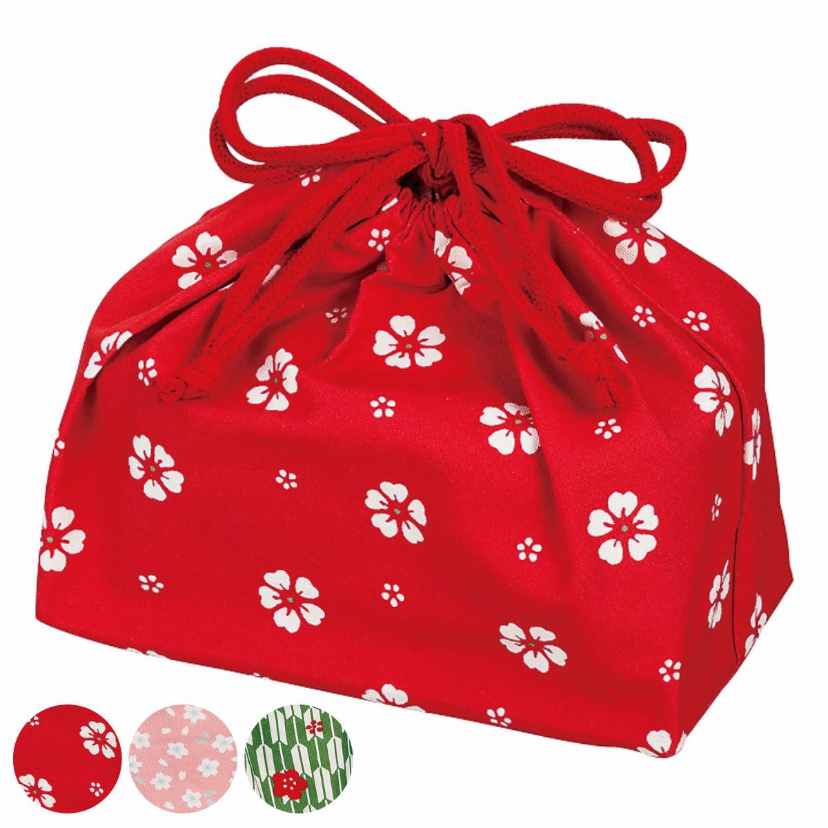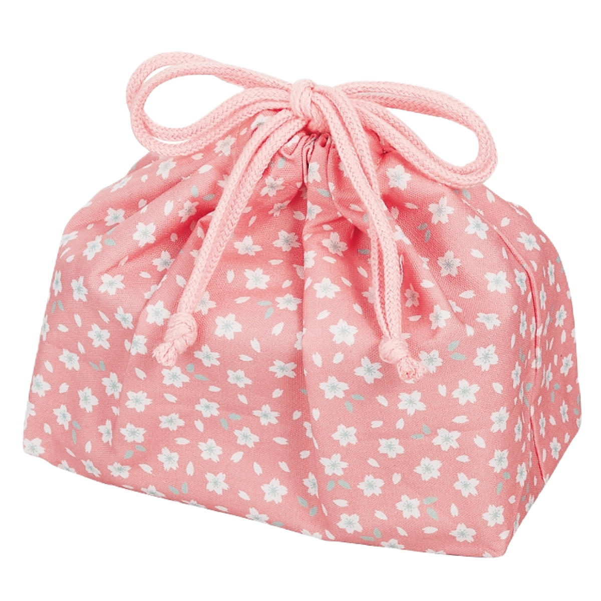 伝統的な和柄の千代紙を連想させる、上品で華やかなデザインの巾着袋です。幅20×奥行10cmのマチが付いているので、横長のお弁当箱も入れられるサイズ感です。