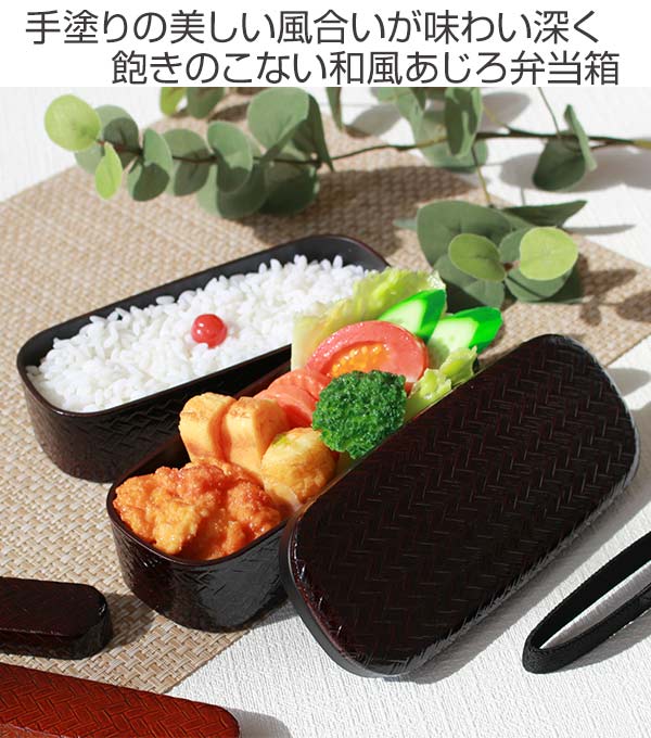 漆器職人の手塗りの技術で仕上げる独特な風合いと飽きのこない味わい深いあじろ模様シリーズのお弁当箱です。和風にもモダンにも合うデザインで、男女や年齢も問わず永くお使いいただけます。