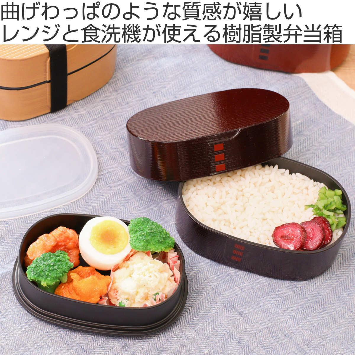 毎日使うお弁当は何よりも使いやすさが大切です。曲げわっぱを樹脂製にすることで、日々の暮らしに寄り添う使いやすさを実現しました。