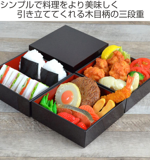 ![]() おすすめポイント 綺麗な木目柄の和風三段重木目が美しい重箱です。おせち料理はもちろん、運動会やピクニック、お花見やパーティーなど大勢でお弁当を食べるイベントに大活躍です。容量は上段・中段・下段とも760ml、三段合わせて合計2280mlと2~3人用に最適なサイズです。 商品詳細 | ||
