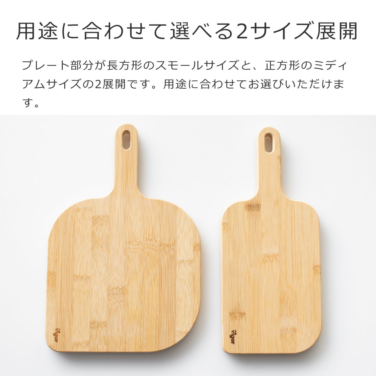 プレート部分が長方形のスモールサイズ、正方形のミディアムサイズの2展開です。用途に合わせてお選びいただけます。