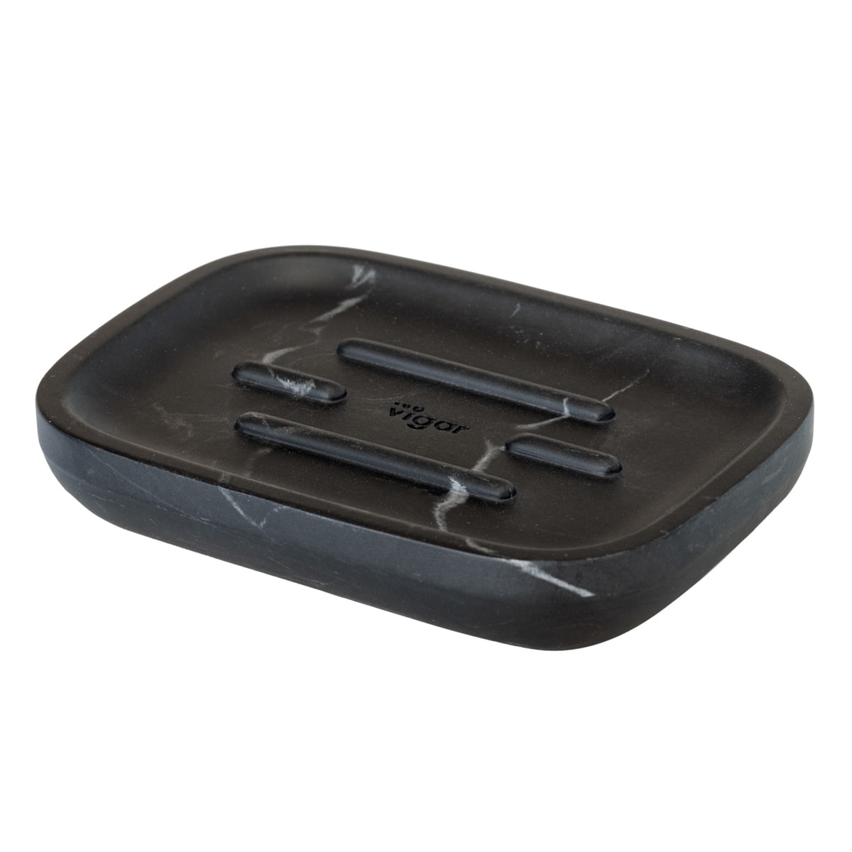 落ち着いたマットな質感のソープトレイです。重厚感のある佇まいで、洗面スペースやバスルームをワンランク上の空間に仕上げます。