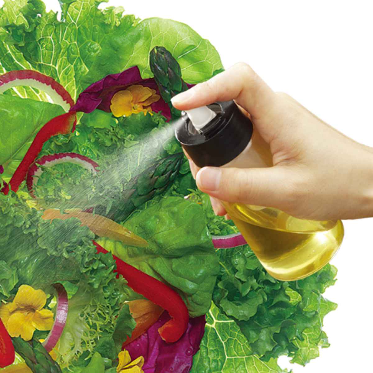 細かく広範囲にスプレーできる加圧式のオイルスプレーです。オイルを霧状にするので、少量のオイルでもまんべんなく均一にスプレーできます。少ない油で調理できるので、油の取りすぎを防止できて、ヘルシーかつ経済的です。