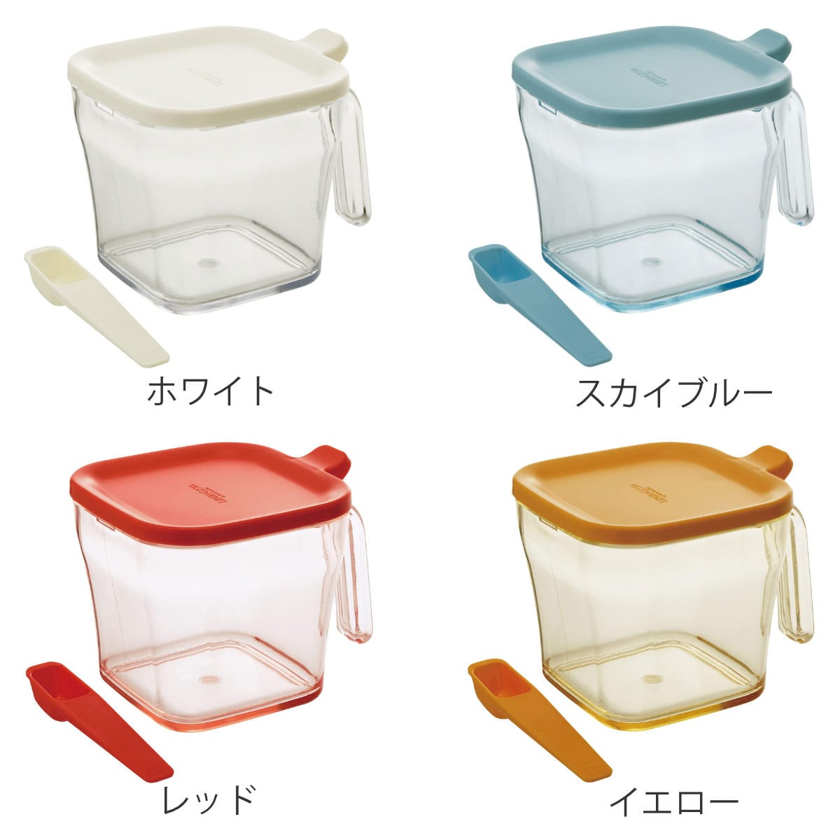 塩や砂糖など、粉末タイプの調味料を入れるのに便利な調味料入れです。本体透明部分にフタと同じ色を混ぜ込んだカラーデザインがポイントです。パッキン付きなので、空気や湿気の侵入を防ぎ、調味料が固まってしまうのを防ぎます。