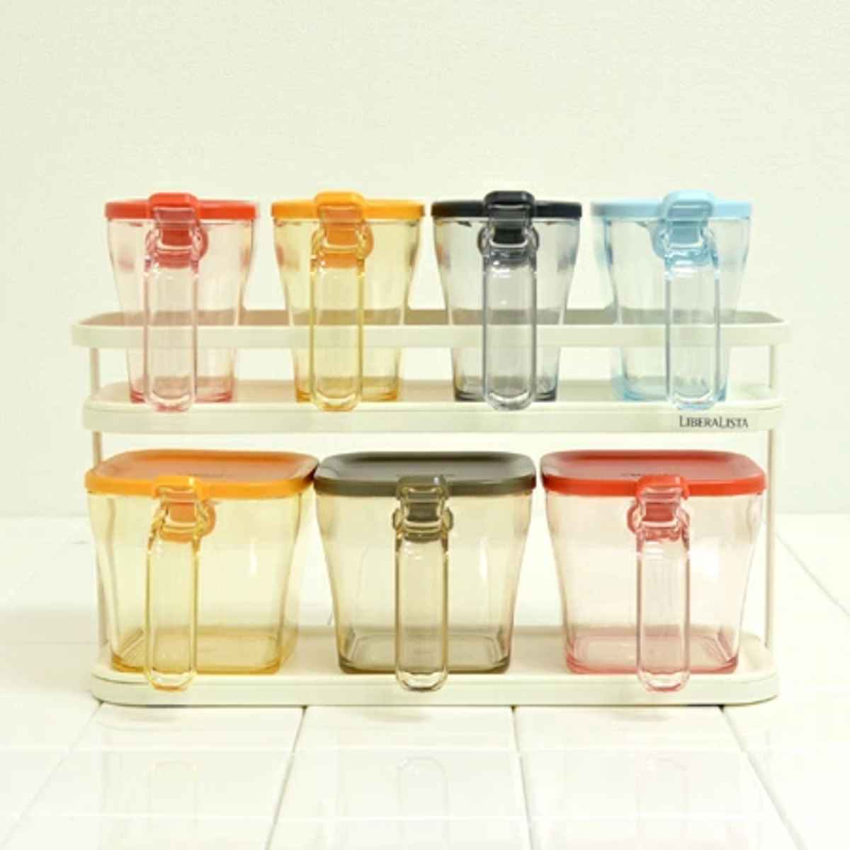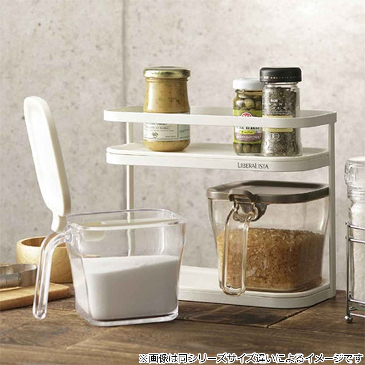 丸みがあり優しいデザインのLIBERALISTAシリーズの調味料ラックです。市販の調味料や不揃いな容器もラックに入れれば見た目もスッキリします。