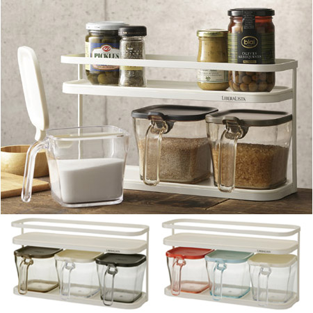 ![]() 見た目すっきり 市販の調味料などもラックに収納できます。 | ![]() 取り出しやすい トレーは角が無く、ラックからポットを取り出しやすいです。 | |