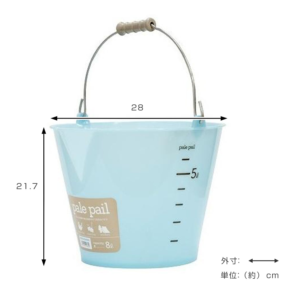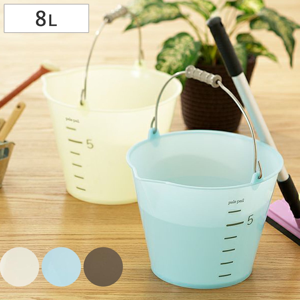 いろいろな場所で使える、おしゃれカラーの目盛付きバケツ