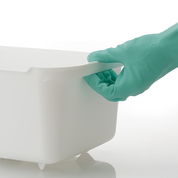 スリムで深めの洗い桶なので浸け置き洗いに便利です。排水栓を引き上げると水が簡単に抜けるので、水が溜まって重たくなった洗い桶をひっくり返す必要がありません。