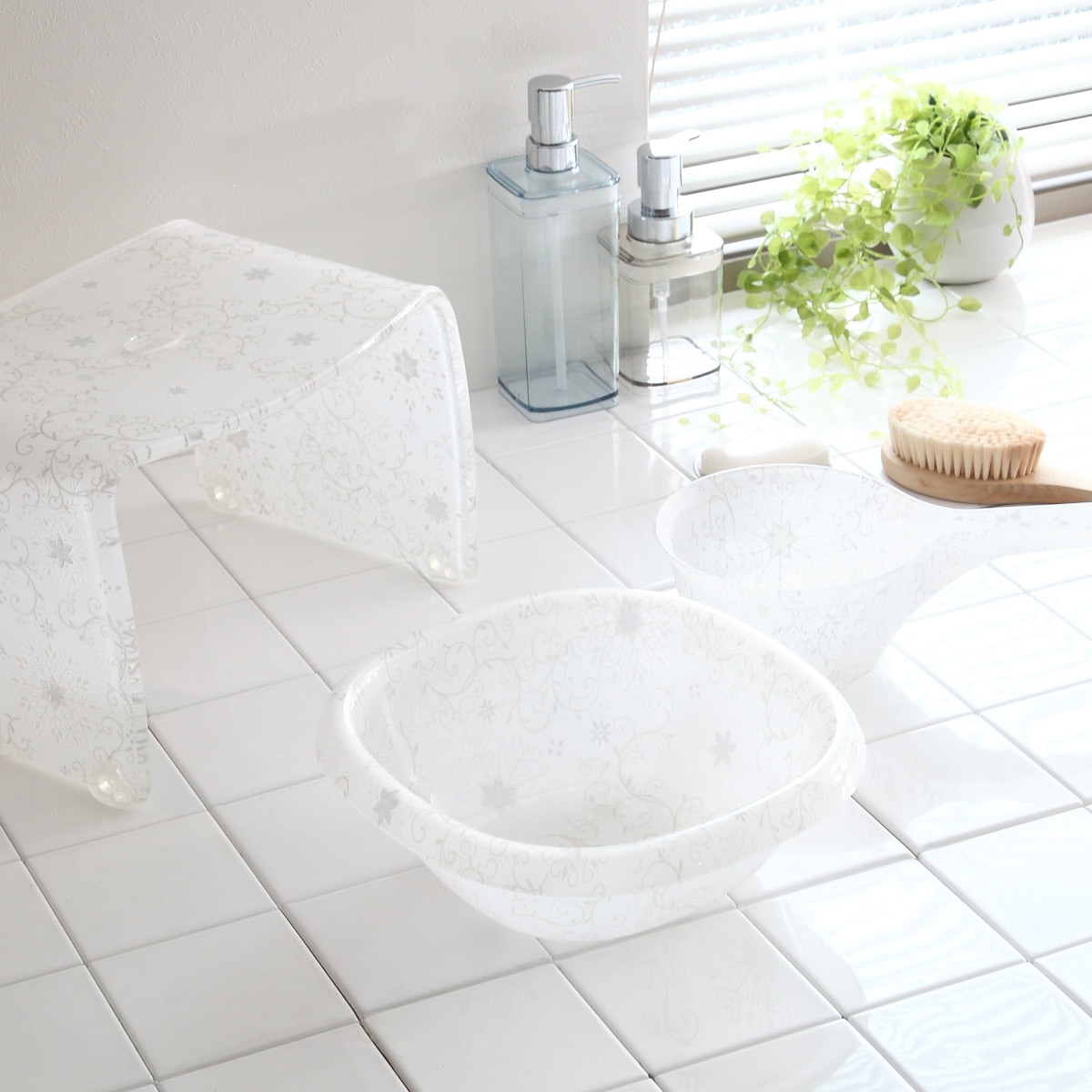 プリンセスをモチーフにした上品で繊細な雰囲気の湯おけです。クリアな透明感が魅力のアクリル製は、丈夫で割れにくく安心してお使いいただけます。