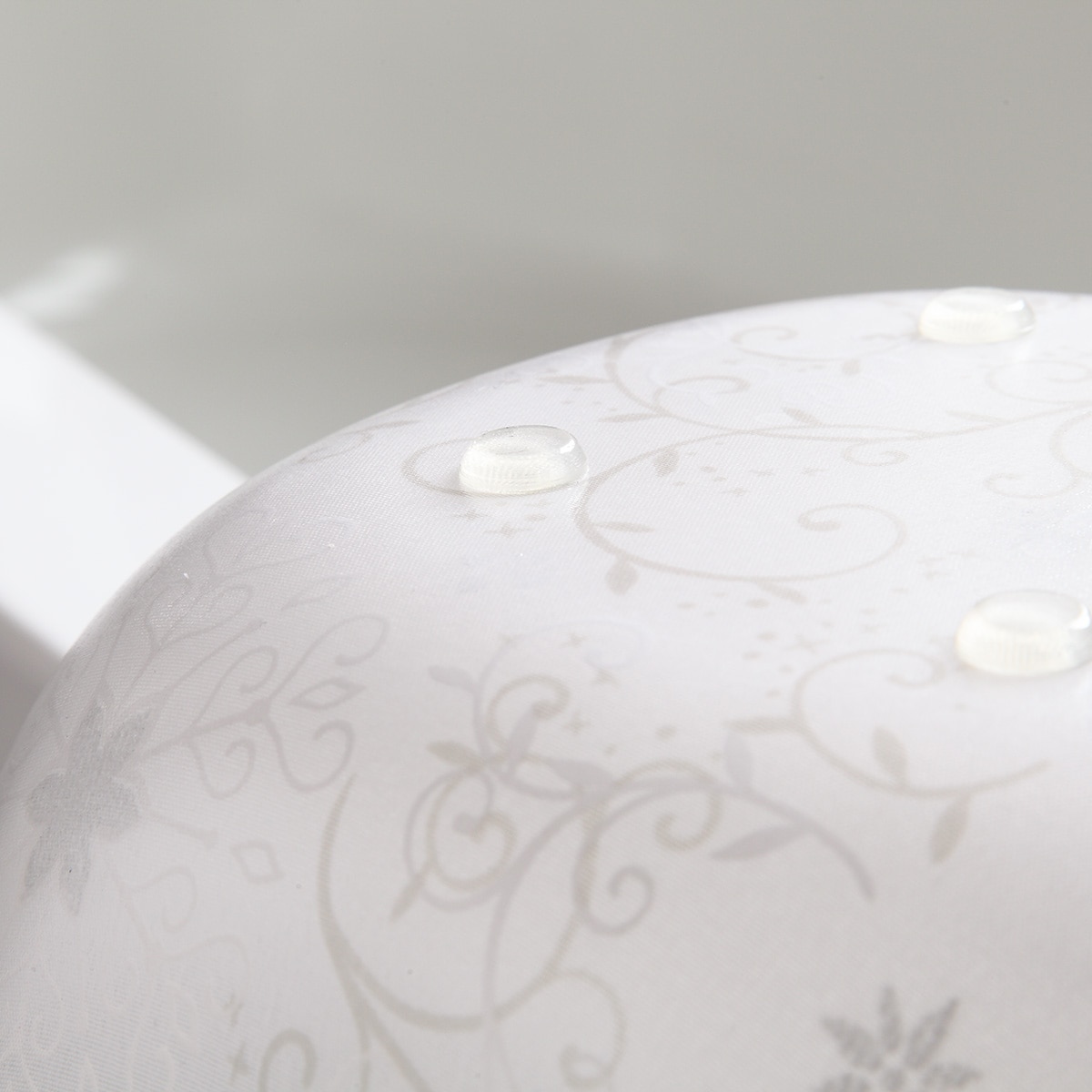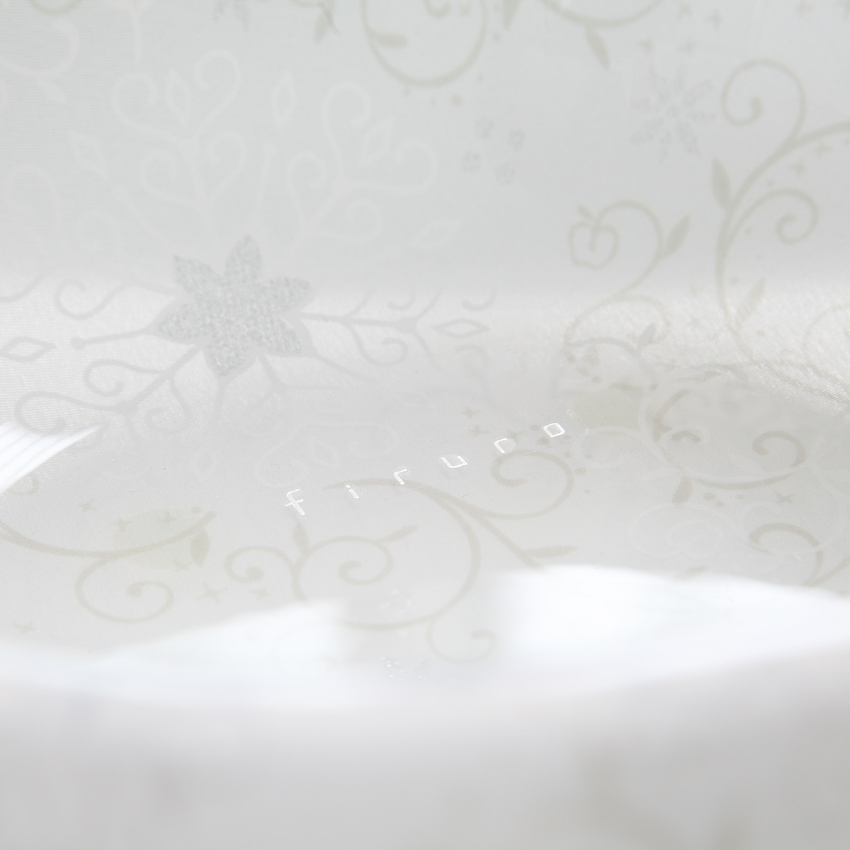 特殊加工により、柄の入った生地がアクリル板の中に積層されています。細かな生地感が繊細に表現され、ラメのアクセントが加わり、まるで浮かびあがるような美しいデザインです。