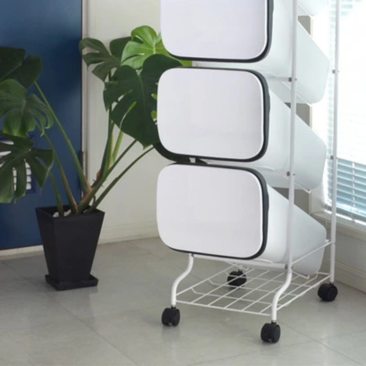 保存食や飲料水のストッカー、散らかりがちなおもちゃ・小物の収納など、アイディア次第でマルチな収納ケースになります。ランドリー収納にすれば、狭い脱衣所も広々使えます。デスク横に置いて雑誌・紙類の仕分けにも便利そうです。