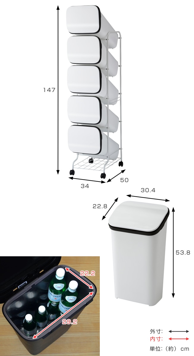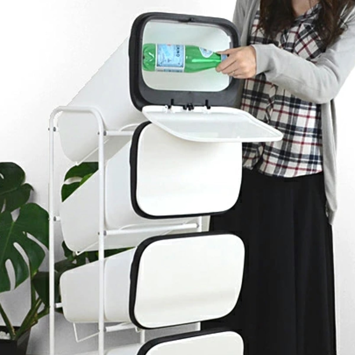 ペットボトルや空き缶・空き瓶などかさばる資源ゴミの分別もラクラクなゴミ箱です。縦に積み重ねているので大容量ながら、新聞紙1面分のスペースがあれば設置可能です。