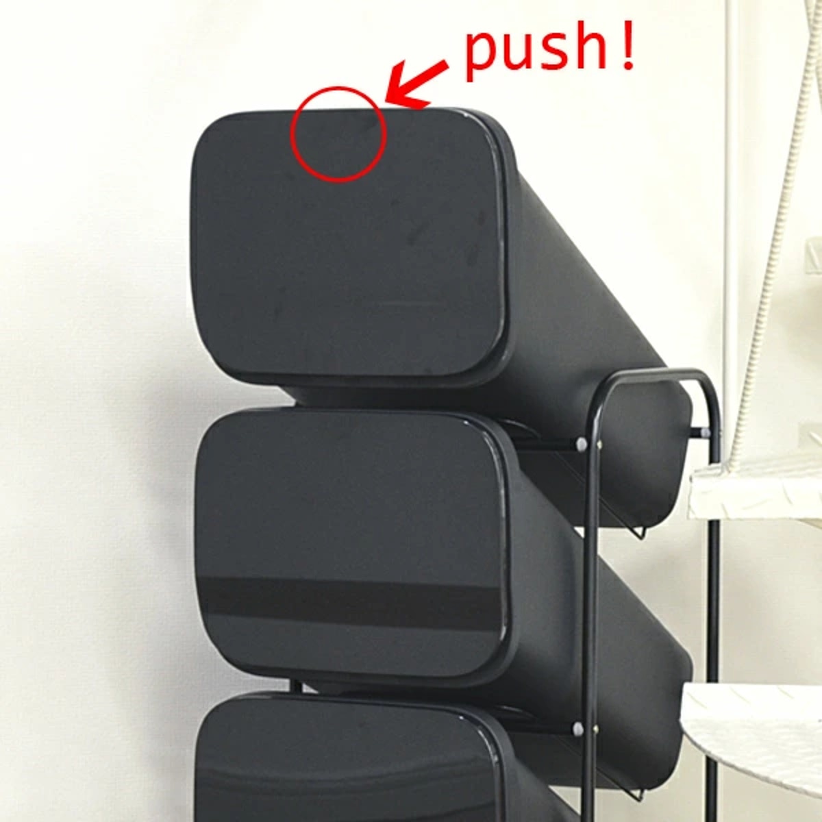 ワンプッシュでゆっくりとオープンするプッシュ式フラップです。最小限のアクションで自動で開くため、片手がふさがっていてもサッとゴミを捨てることができます。