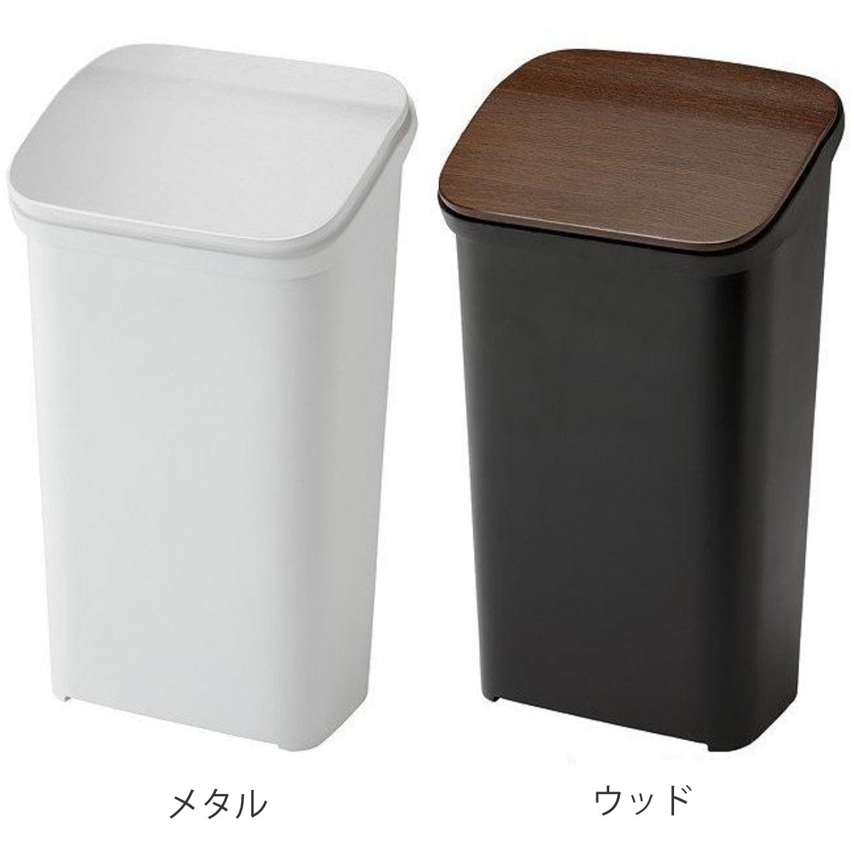 本体はシンプルなホワイトとブラック、ふたはスタイリッシュなメタルと温かみのあるウッドがあり、キッチンの素材に合わせてお選びいただけます。生活感を隠すシンプルなデザインがインテリアに馴染みます。