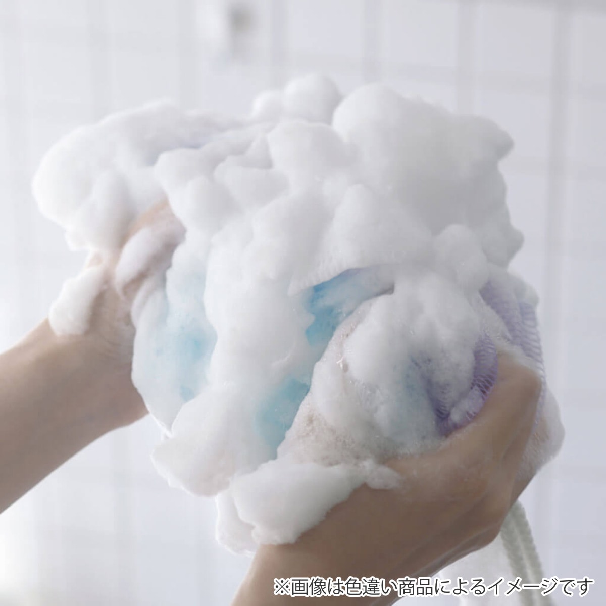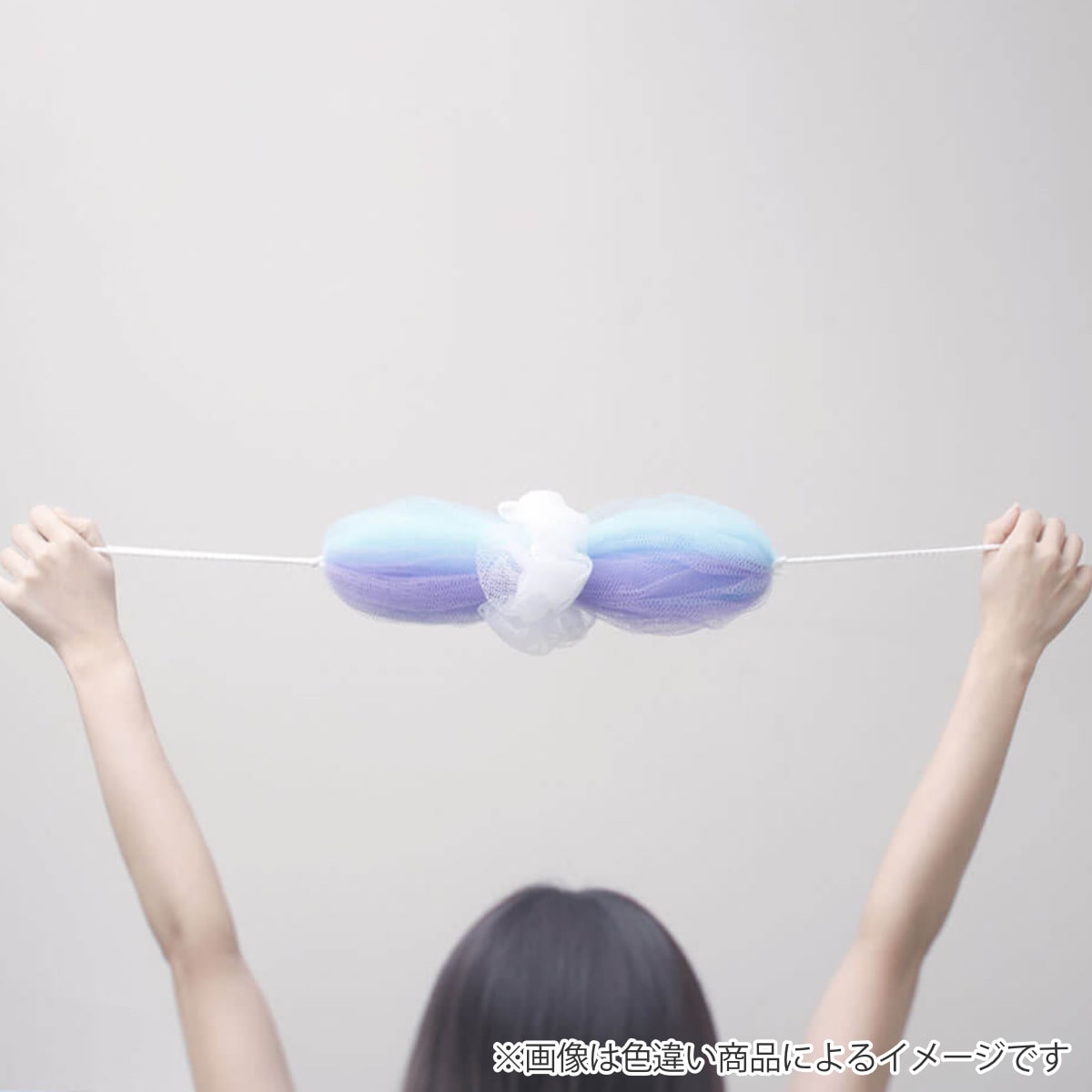 泡立てて、泡で体を洗うタイプのボディタオルです。泡立てボールの両端にひもが付いており、このひもがぐーんと伸びるので、背中までしっかり洗えます。