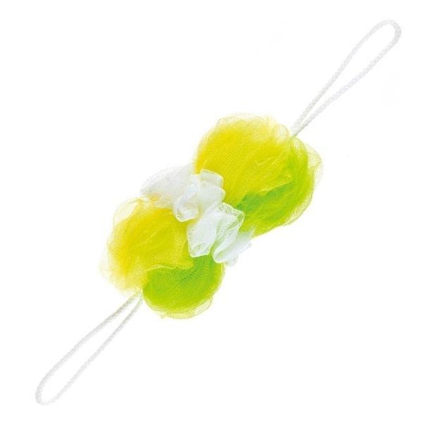 泡立てて、泡で体を洗うタイプのボディタオルです。泡立てボールの両端にひもが付いており、このひもがぐーんと伸びるので、背中までしっかり洗えます。
