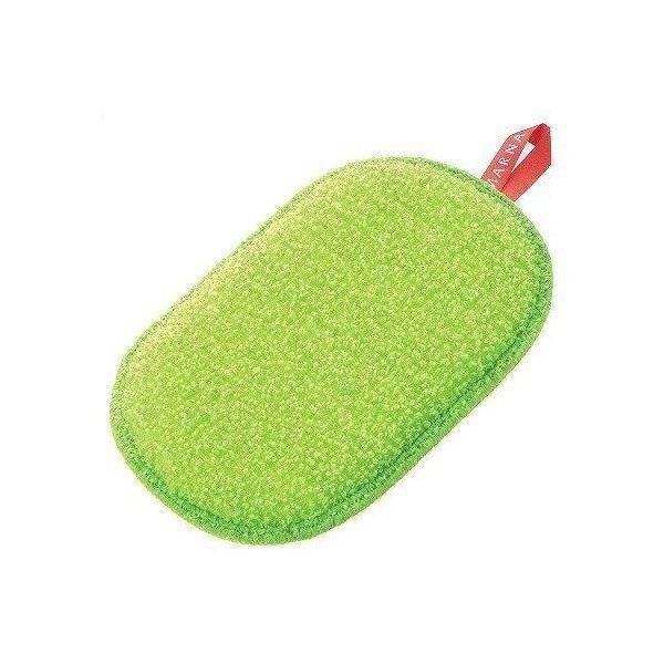 ●使い分けができる二面タイプで、イエローの面はやわらかいアクリルパイルです。アクリルタワシにありがちなキシキシ感がありません。