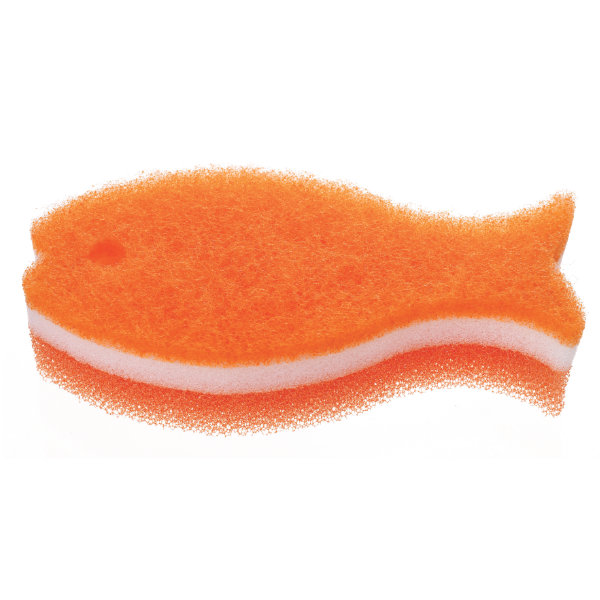 手に馴染み使いやすい、おさかなの形のスポンジ