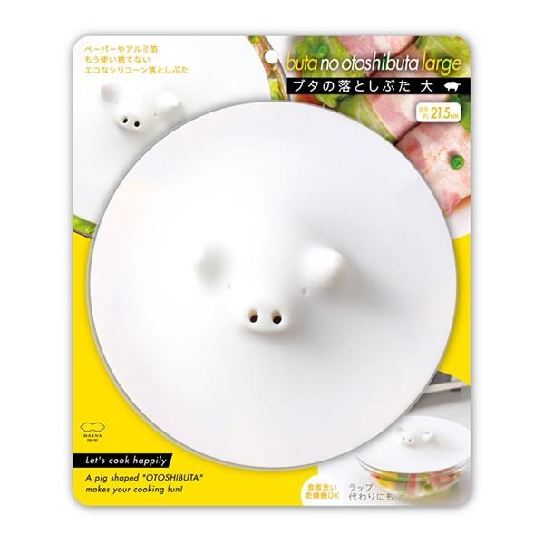 かわいいブタの落としぶたが、煮物などのお料理を楽しくお手伝いします。直径約21.5cmの大きなサイズなので、大量の煮物を作るときやフライパンでの調理にも大活躍します。やわらかなシリコーンゴム製だから、食材の形にうまくなじみ熱を効率的に循環させます。