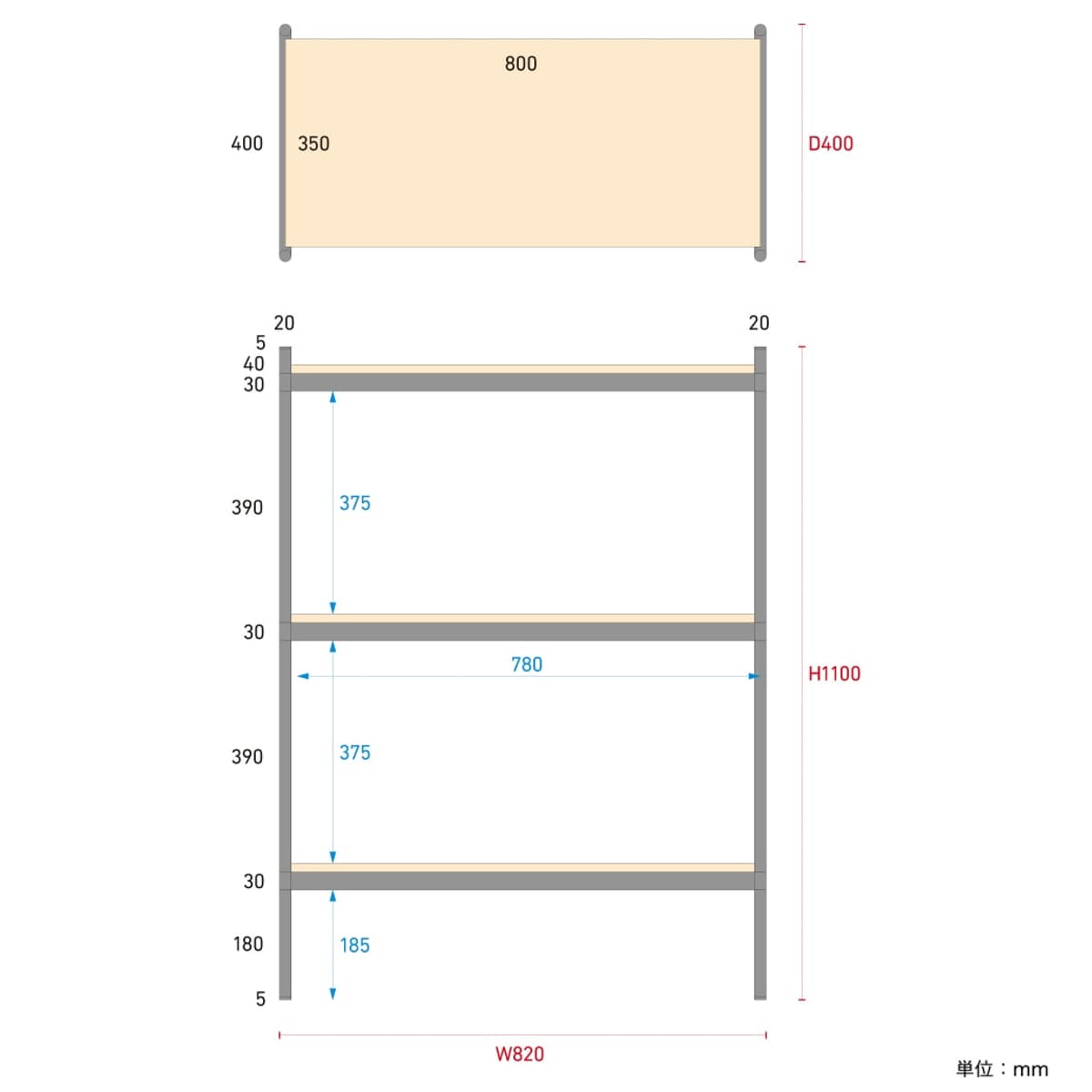 | 耐荷重 | 全体:300kg 一段:100kg |